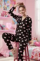 Hartpatroon Pyjama Set met Knopen en Lange Mouwen
