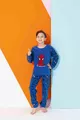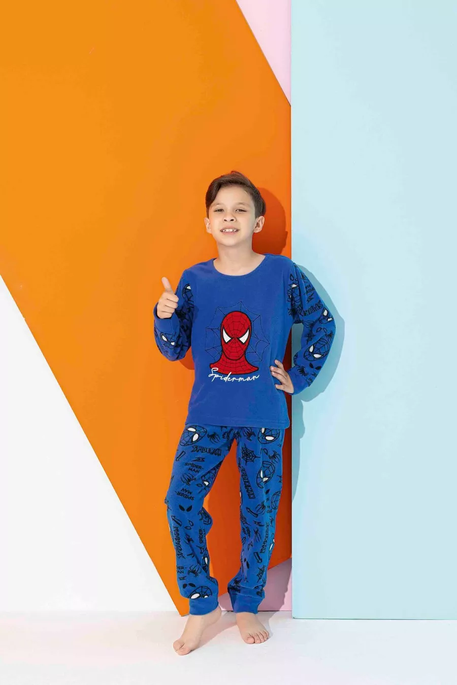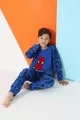 Heren Blauw Jongeren en Kinder Spiderman Print Lange Mouwen Fleece Winter Warme Pyjama Set