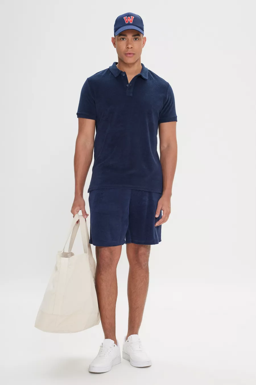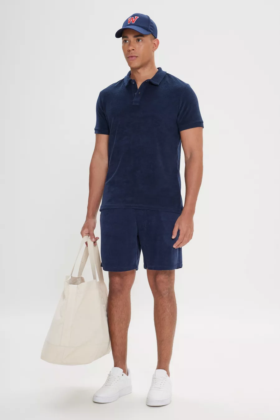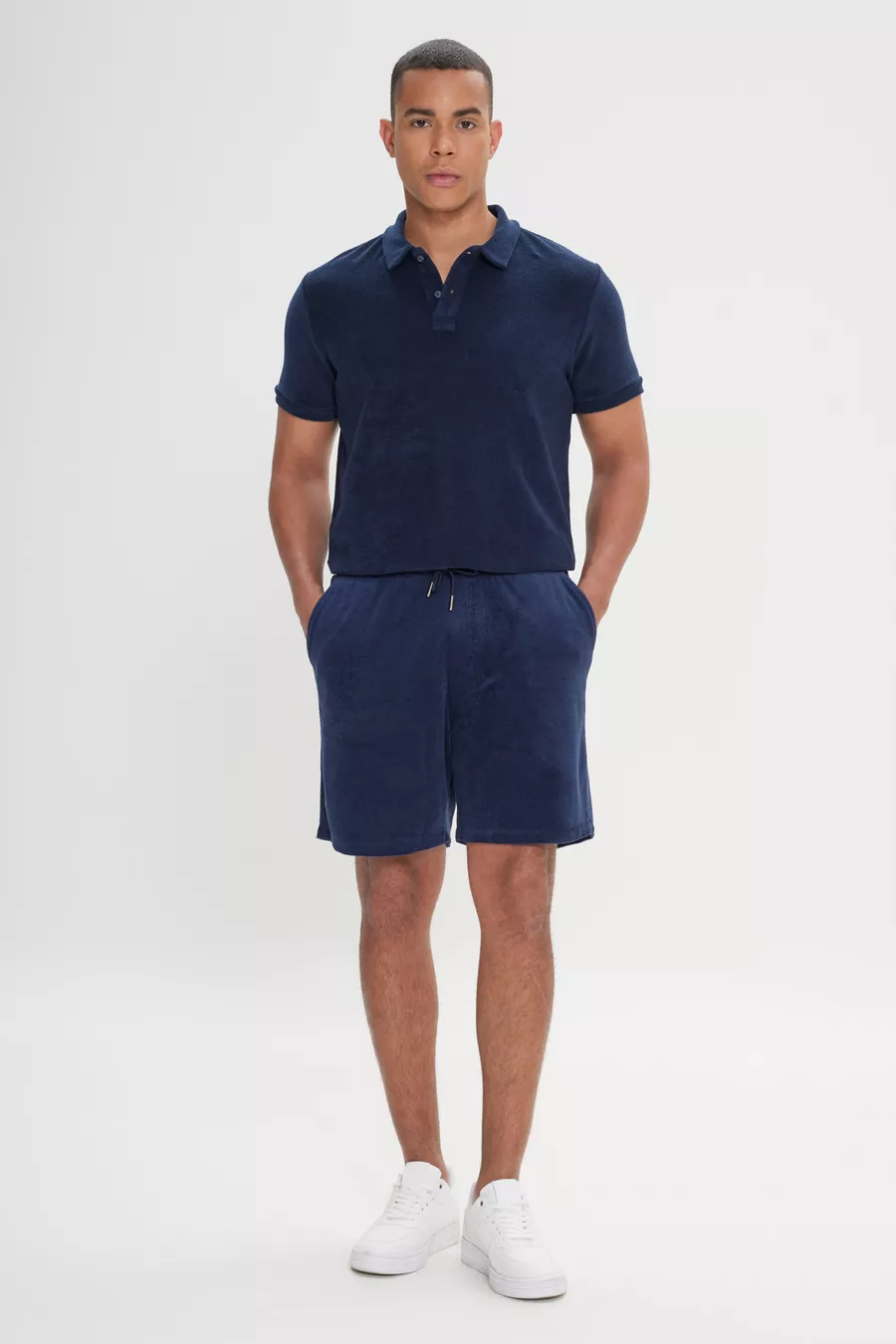 Heren Donkerblauwe Standaard Pasvorm Normale Snit Handdoekshort