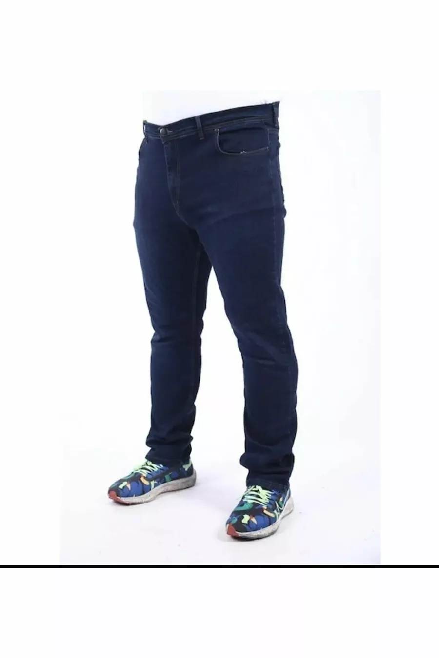 Heren Full Stretch Rechte Pijpen Grote Maten Donkerblauwe Jeans