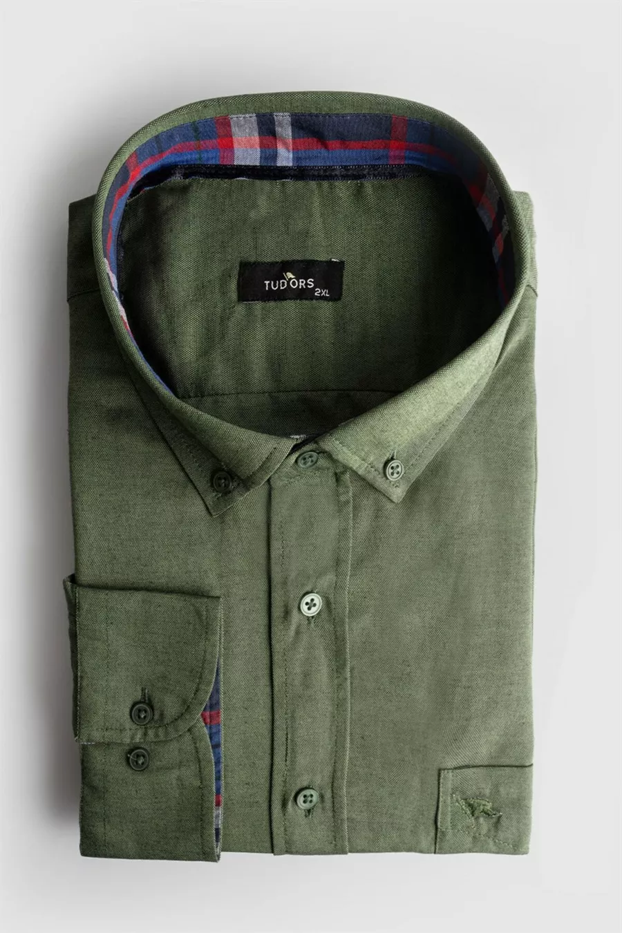 Heren Grote Maat Comfortabele Pasvorm Katoenen Gemakkelijk Strijkbaar Knopenhals Effenkleurige Kaki Sportoverhemd