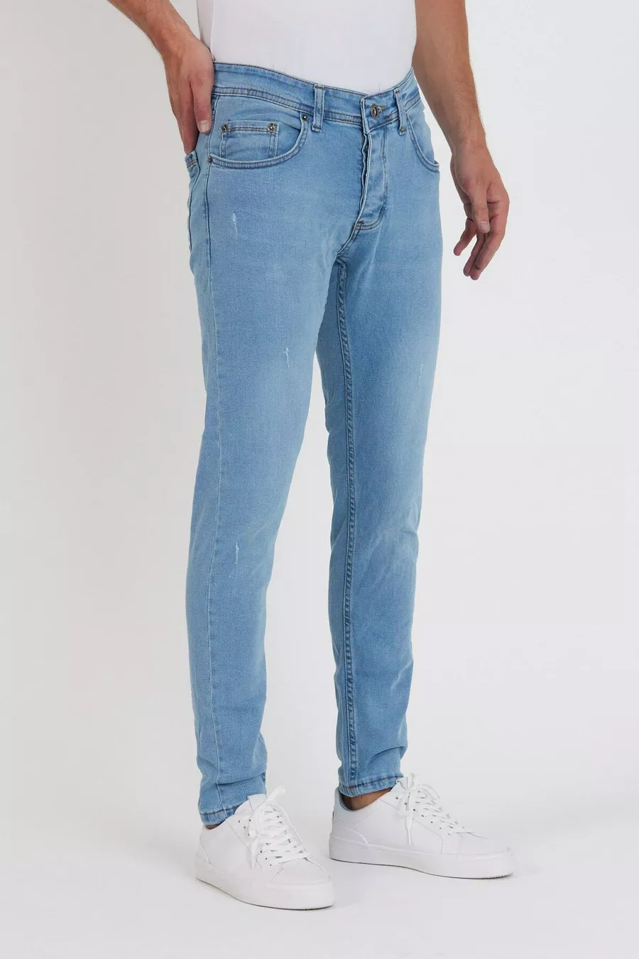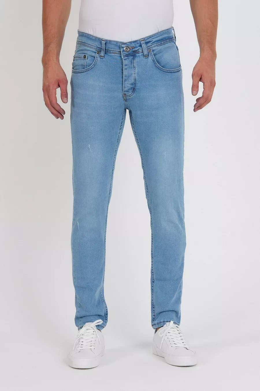 Heren Jeans Skinny Fit Rekbaar Licht IJsblauw Met Gescheurde Details