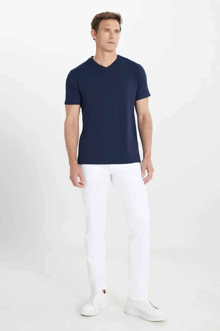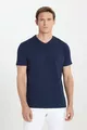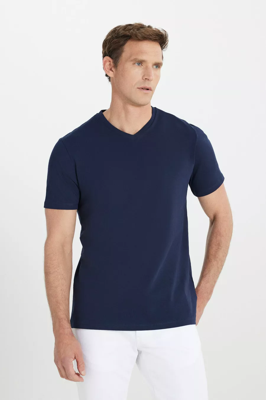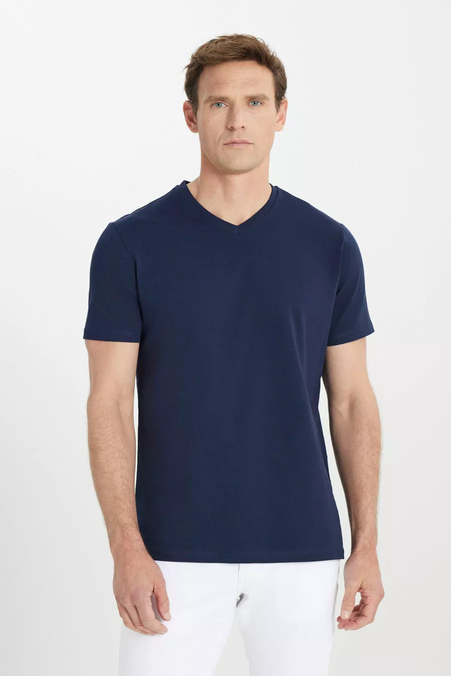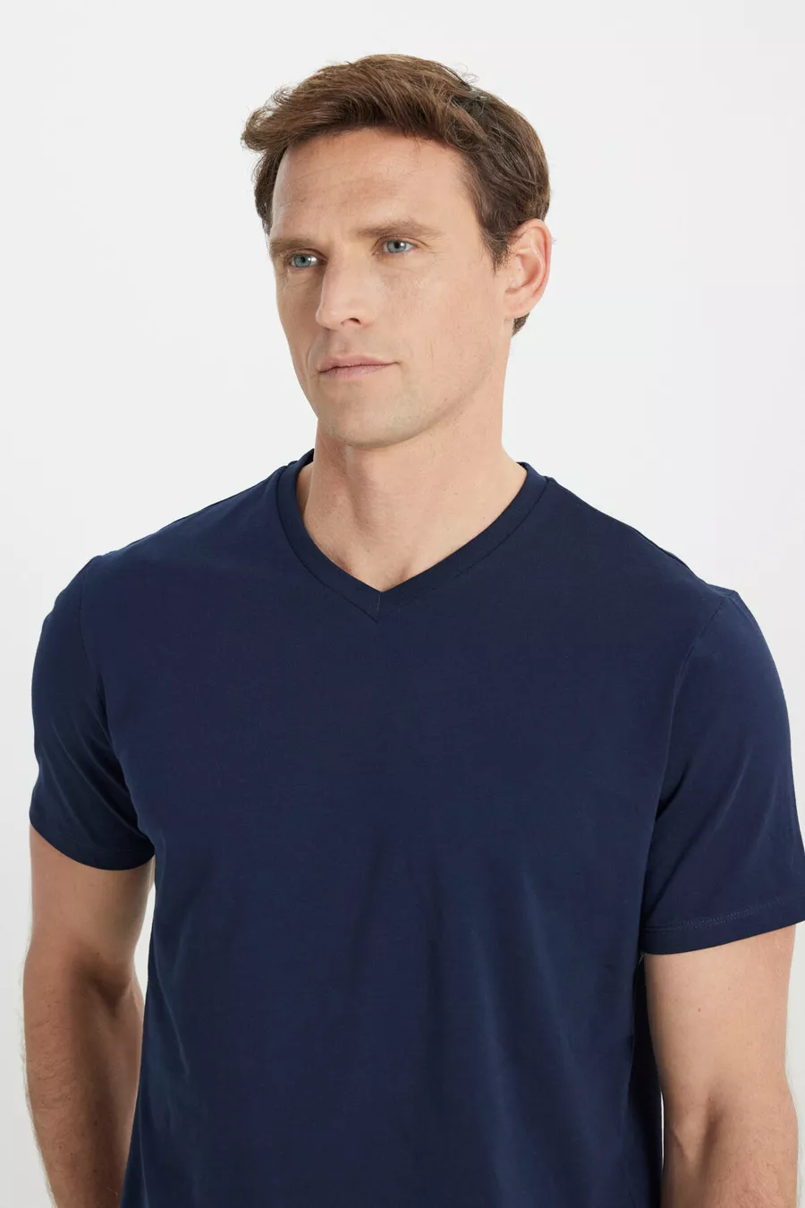 Heren % Katoen V-Hals Donkerblauw Slim Fit Strak T-Shirt