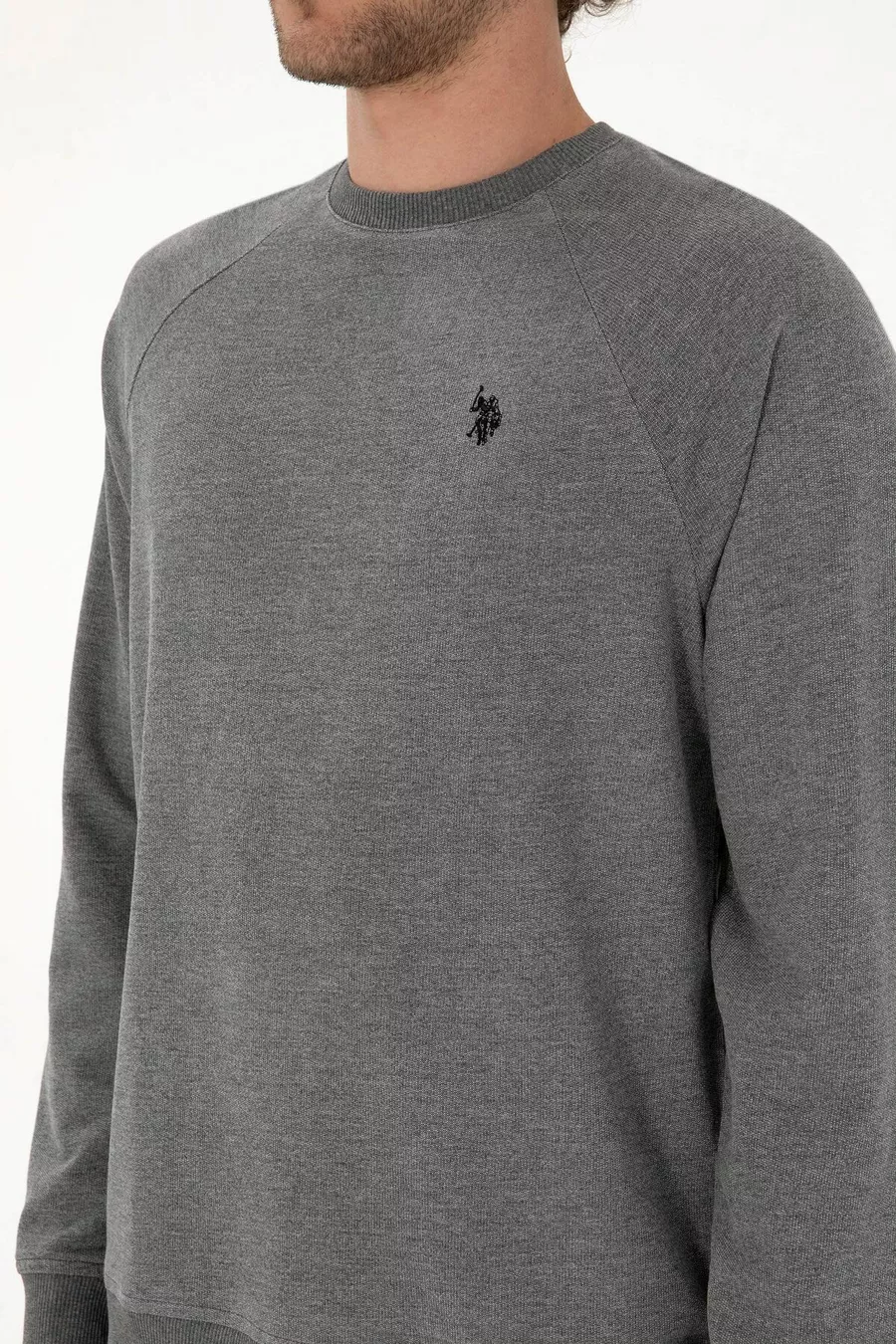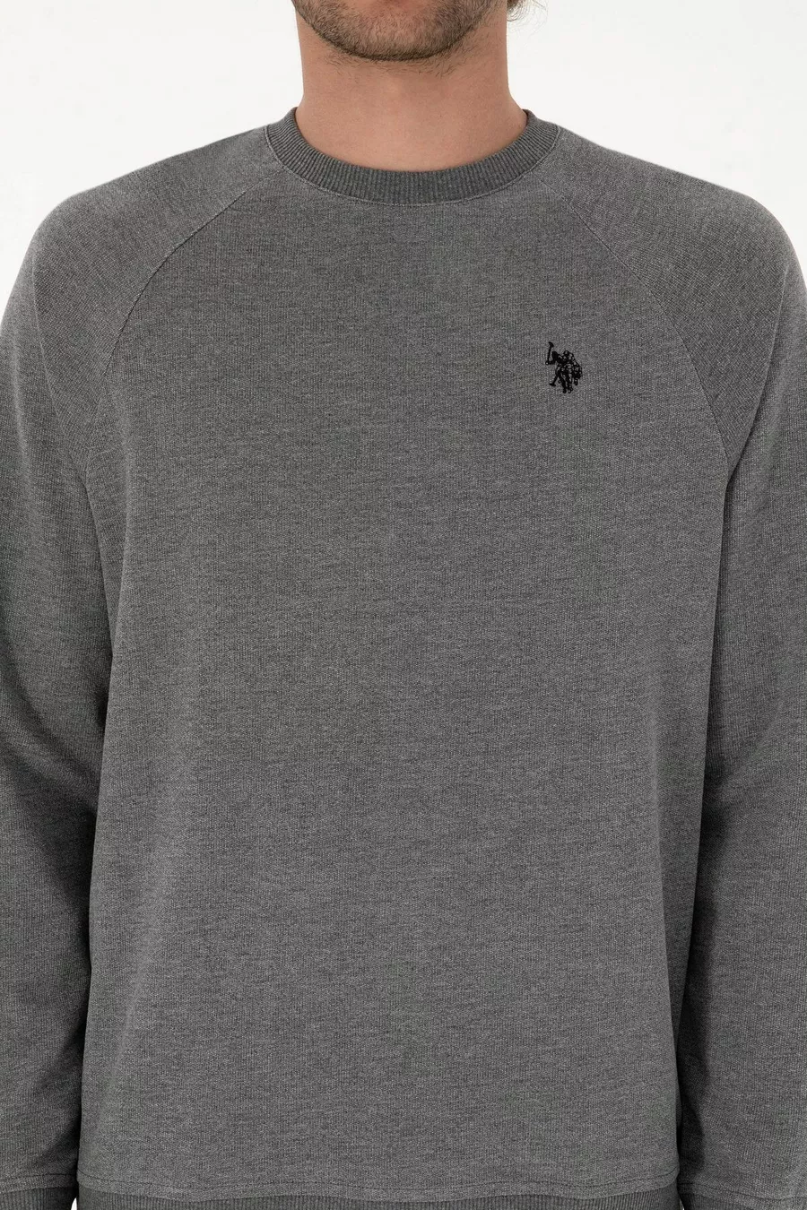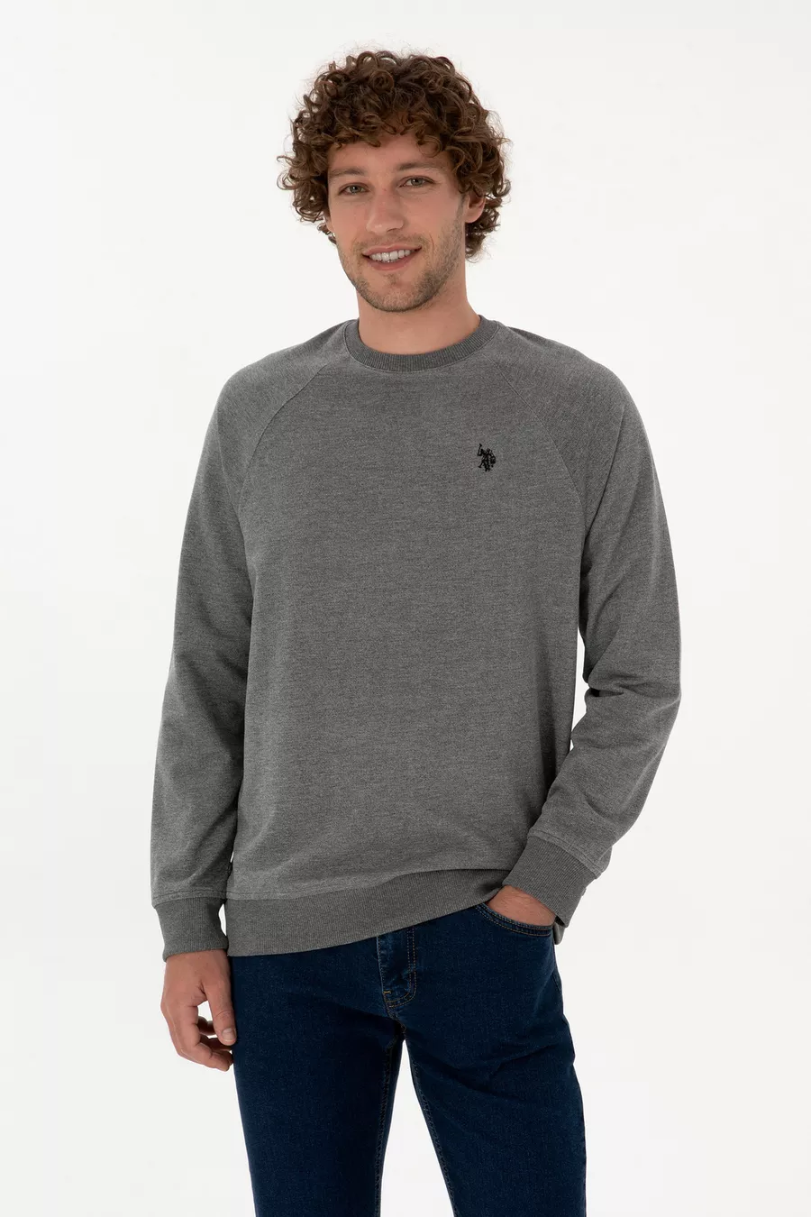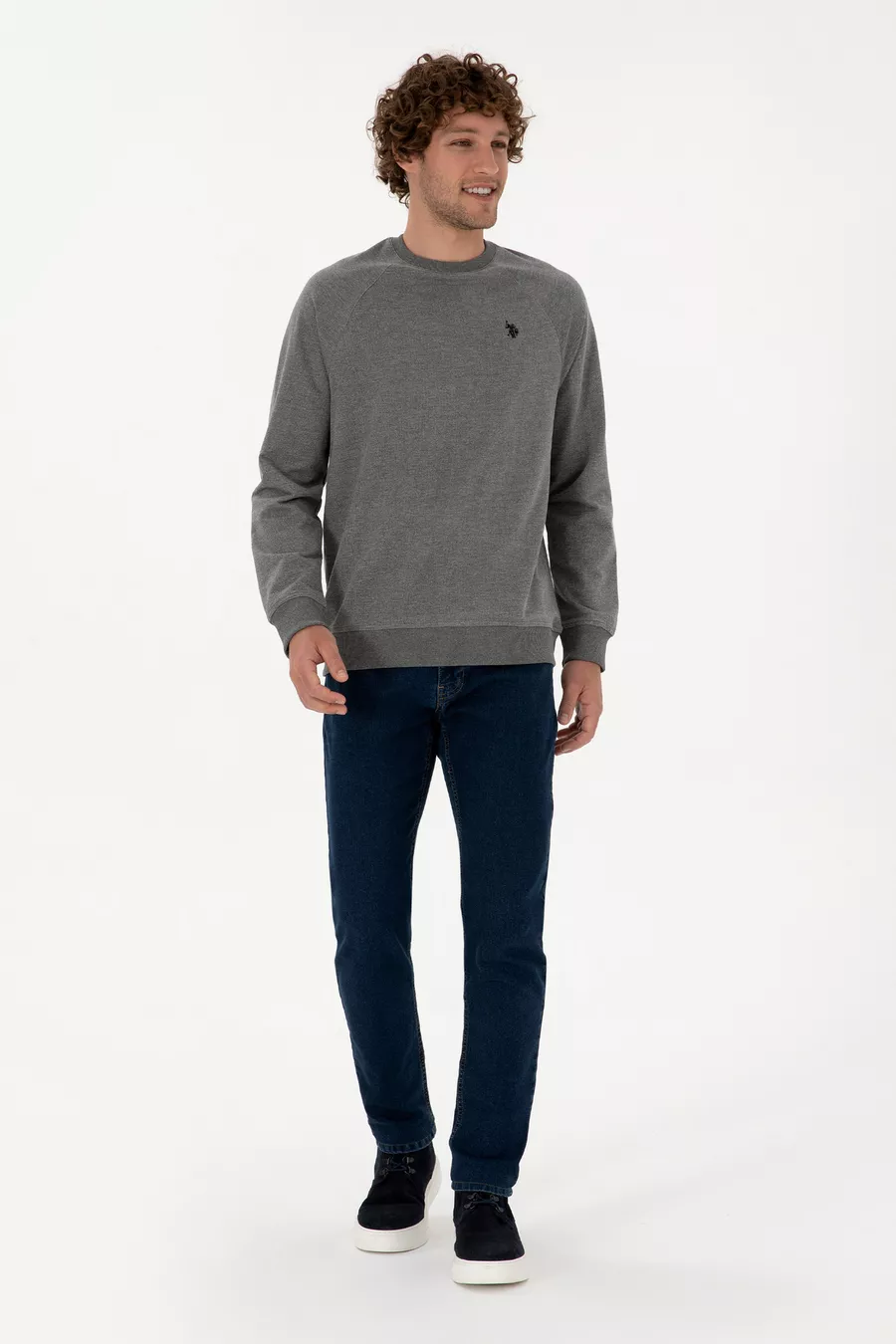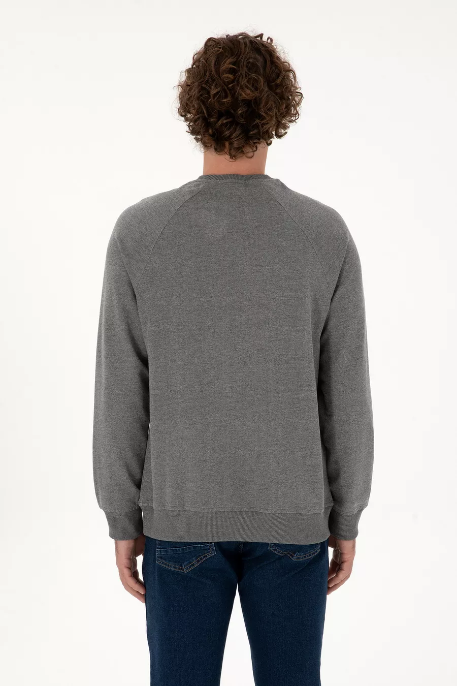 Heren Regular Fit Ronde Hals Antraciet Melange Dun Basic Sweatshirt