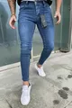 Beentype: Smal Riem/Gordelstatus: Zonder riem Taille: Normale taille Kleur: Blauw Materiaal: Denim Zak: 5 zakken Producttype: Effen Collectie: Denim Lengte: Standaard Stoftype: Denim Silhouet: Slim Omgeving: Dagelijks Pasvorm: Slim fit Patroon: Effen Extra eigenschap: Rekbaar Sluitingstype: Met knopen Weefseltype: Denim Duurzaamheidsdetail: Nee Persona: Fashion Forward Materiaalcomponent: 98% Katoen, 2% Lycra Wasinstructies: T09 Herkomst: TR Doosstatus: Geen doos Verpakkingsinhoud: Enkel