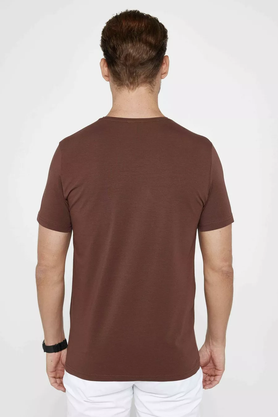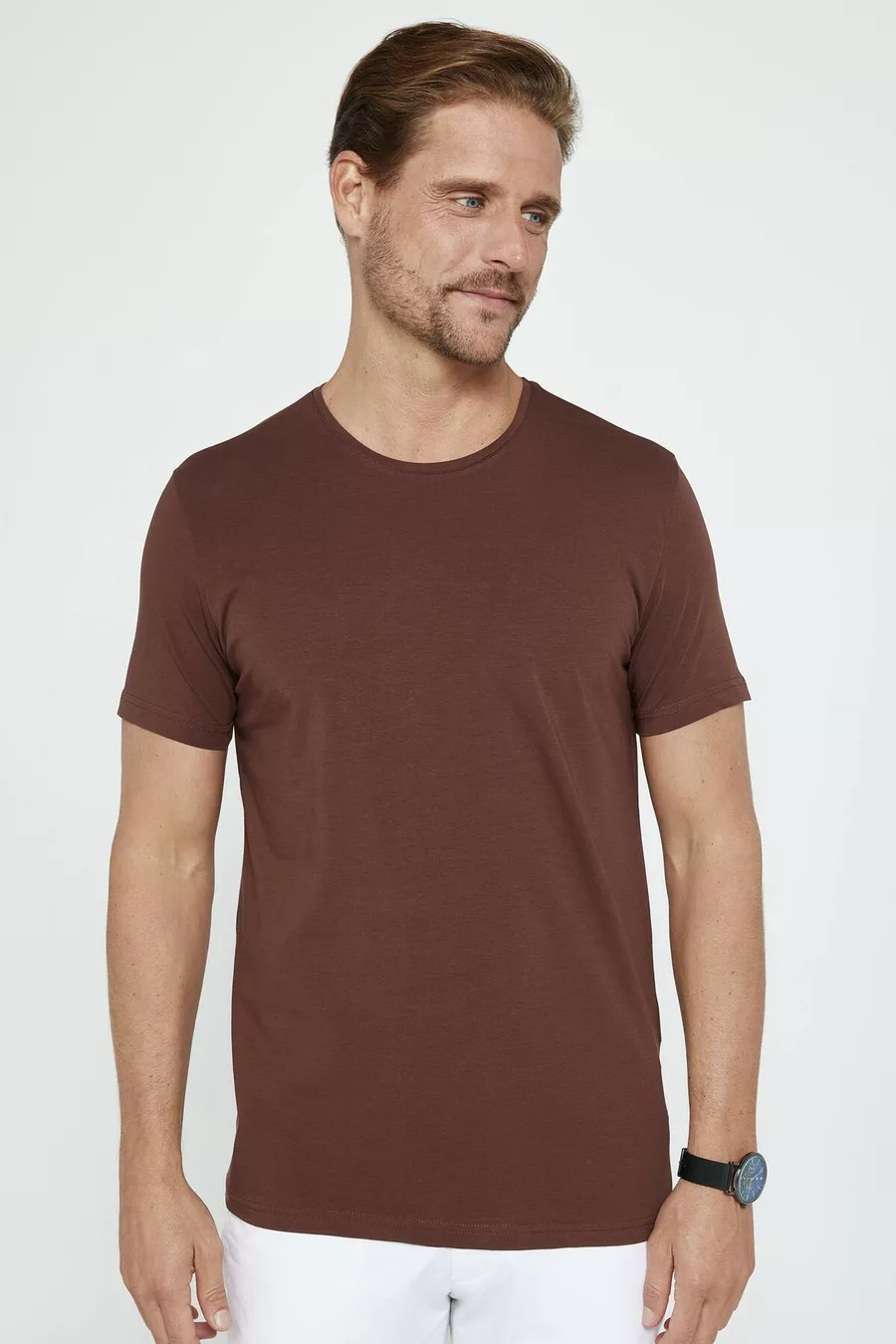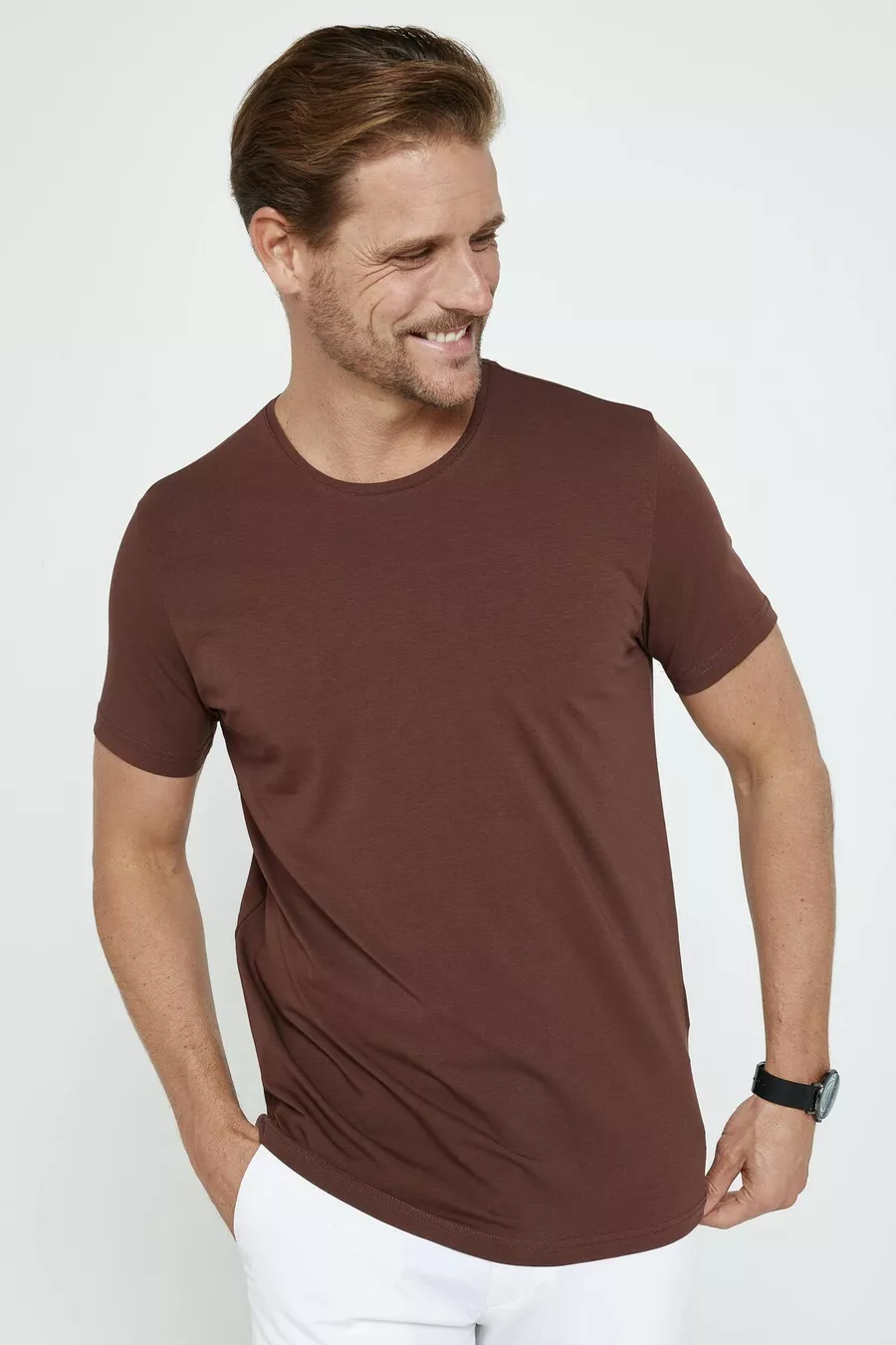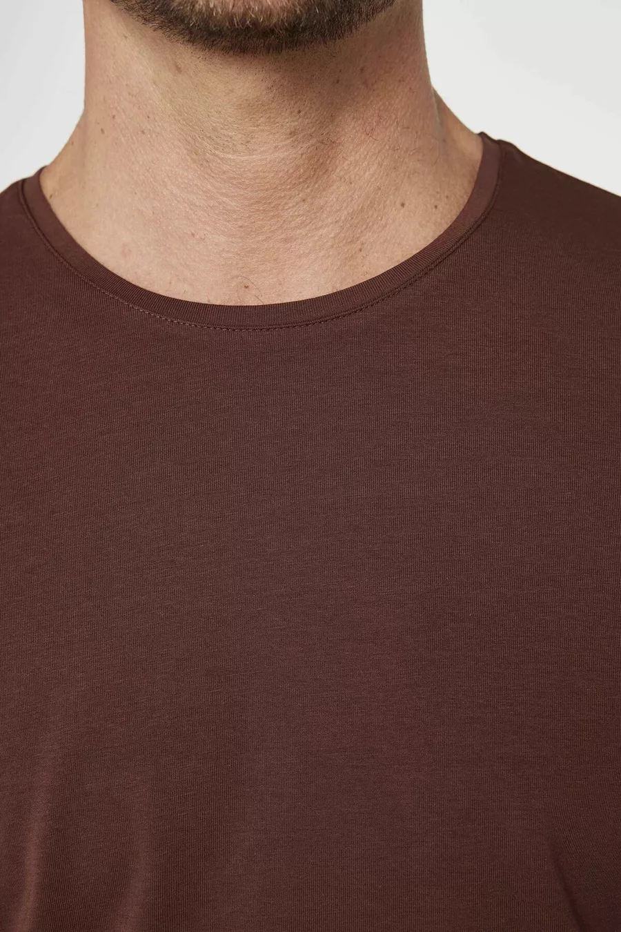 Heren Slim Fit Strakke Snit Katoen Zachte Textuur Elastische Stof Effen Basic Bruine Ronde Hals T-shirt