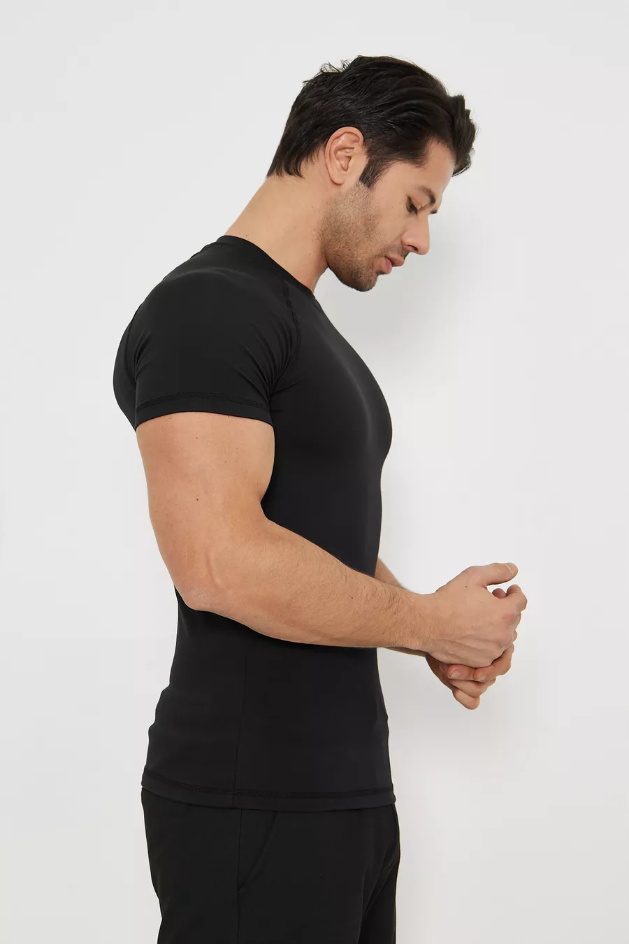 Patroon: Effen Extra Kenmerk: Super Elastisch Collectie: Sportswear Pasvorm: Slim Kleur: Zwart Hals type: Ronde hals Materiaal: Spandex Stof type: Gebreid Mouw type: Korte mouw Stof technologie: Ademend Materiaal samenstelling: 80% Spandex, 20% Elastaan (Lycra) Wasinstructies: Aanbevolen bij 30 graden te wassen. Lengte: Standaard Silhouet: Slim Mouwlengte: Kort Duurzaamheidsdetail: Gerecycled + Organisch Omgeving: Sportswear Herkomst: TR Inhoud van het pakket: Enkelvoudig