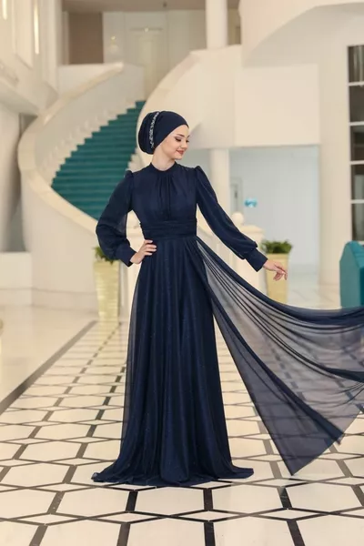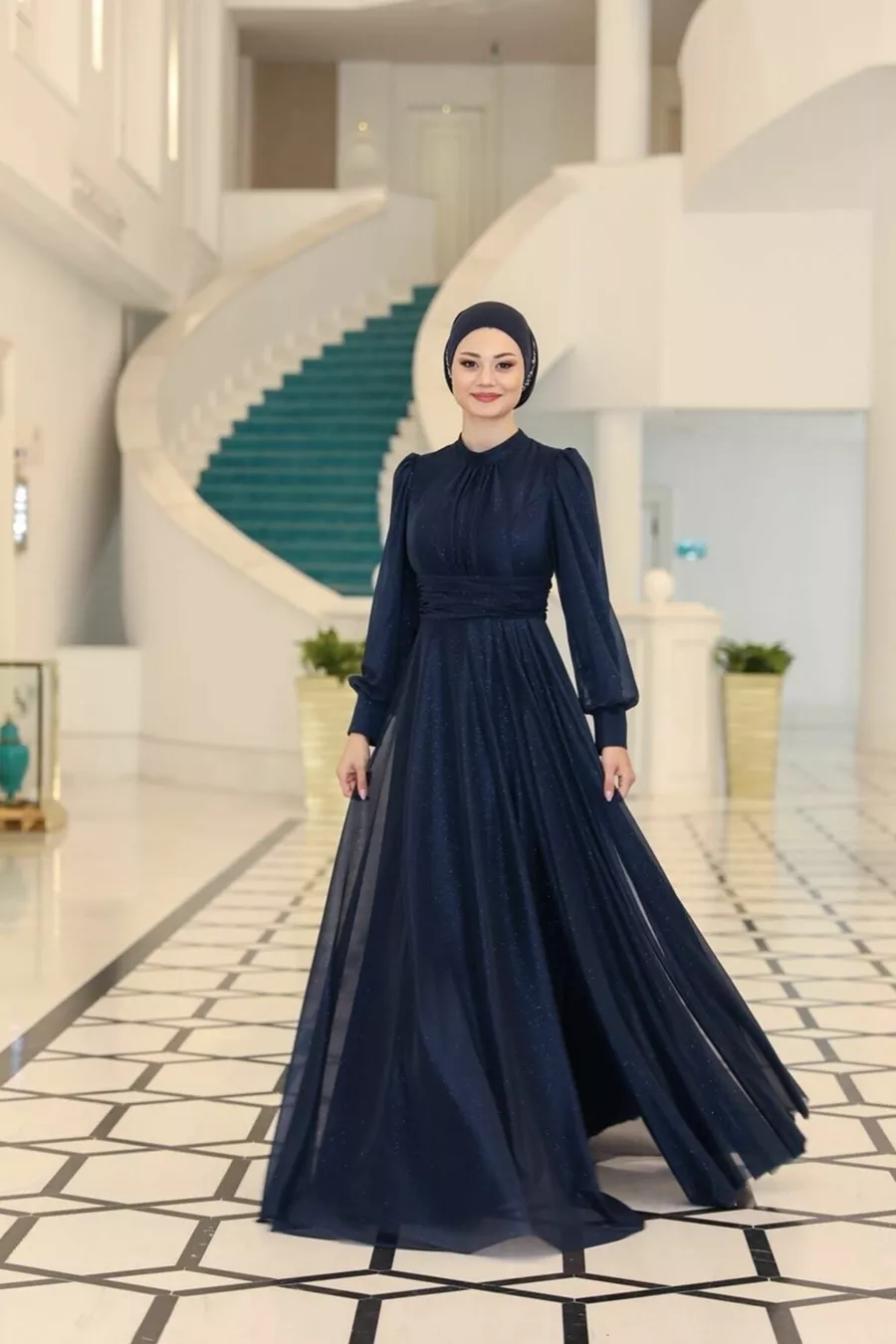 Hijab avondjurk glitter chiffon taille draperen gedetailleerde avondjurk