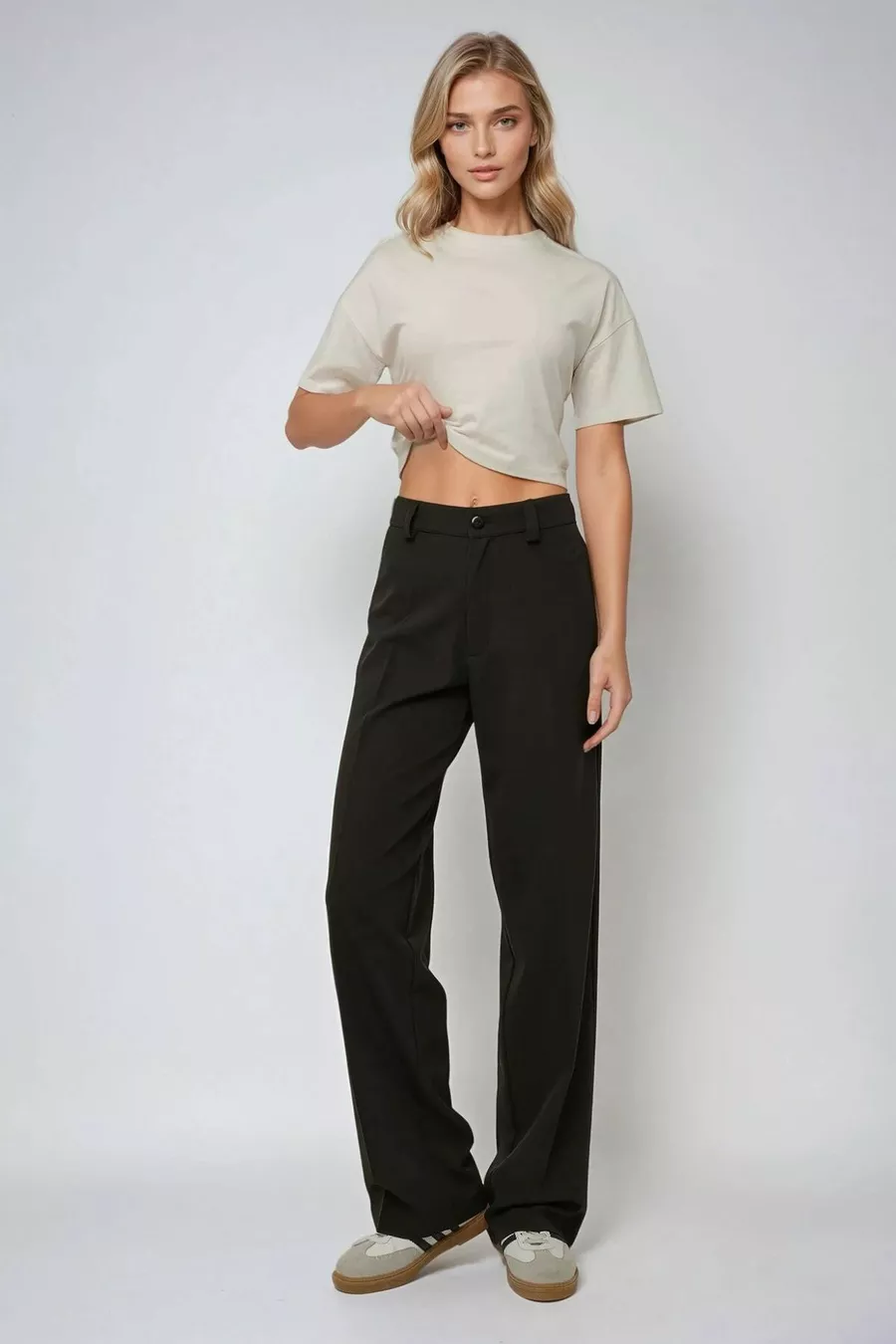 Materiaal: Elastaan Stofsoort: Geweven Pijptype: Recht Taille: Hoge taille Patroon: Effen Kleur: Zwart Zak: Zonder zakken Productdetails: Ritssluiting Collectie: Non-Denim Dikte: Medium Voering: Zonder voering Lengte: Lang Silhouet: Recht Occasie: Casual/Dagelijks Pasvorm: Recht Extra functie: Geen extra functie Weeftype: Viscose Suprem Persoonlijkheid: Smart Bedrukking/Borduurtechniek: Zonder print Riem/Gordel: Zonder riem Duurzaamheidsdetail: Nee Materiaalsamenstelling: 62% Viscose, 35% Polyester, 3% Elastaan Wasinstructies: Geen bleekmiddel, Fijnwasprogramma 30°C, Stomen, Plat drogen, Wassen met zacht wasmiddel Seizoen: Alle seizoenen Oorsprong: TR Verpakkingstoestand: Geen doos