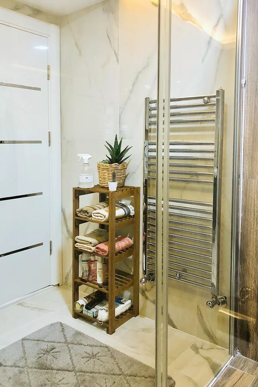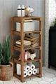 Materiaal: Hout Kleur: Bruin Hoogte: 90 cm Breedte: 30 cm Diepte: 25 cm Garantieperiode: Geen garantie Stijl: Scandinavisch Thema / Stijl: Modern Kenmerk: Met plank