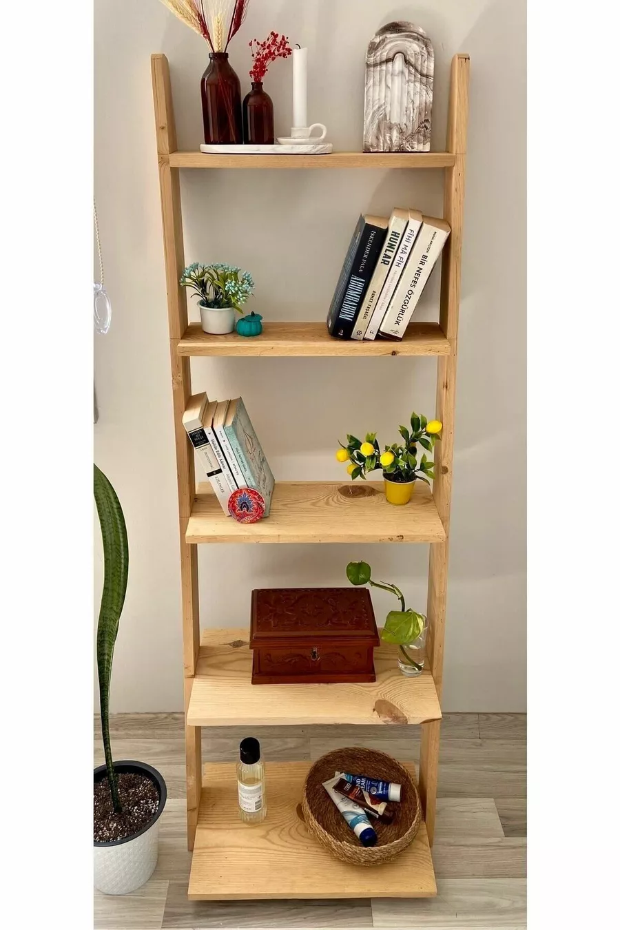 Tips: Klassiek Materiaal: Hout Kleur: Bruin Hoogte: 156 cm Breedte: 30 cm Diepte: 30 cm Aantal planken: 5 Materiaal van het frame: Hout Stijl: Klassiek