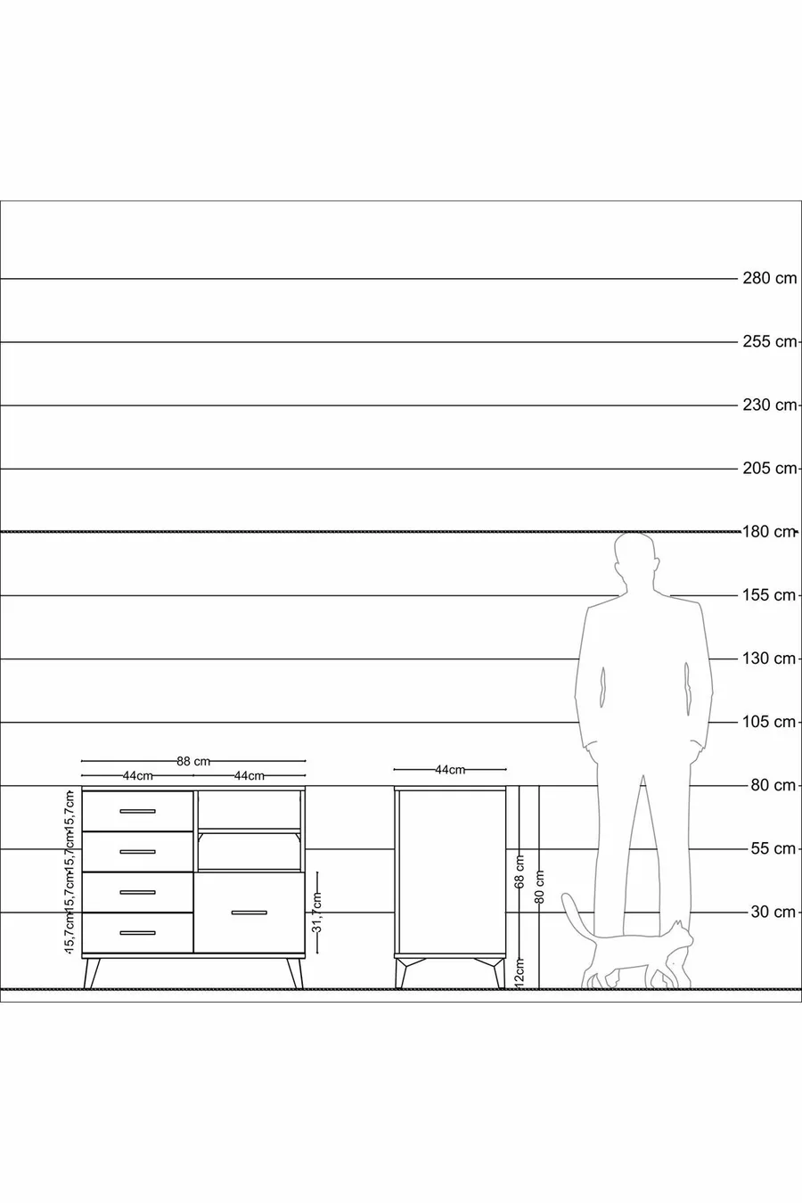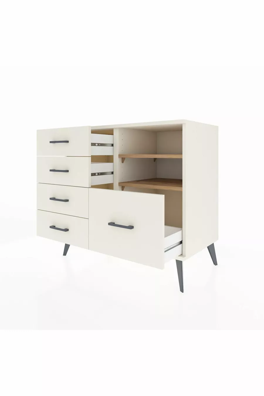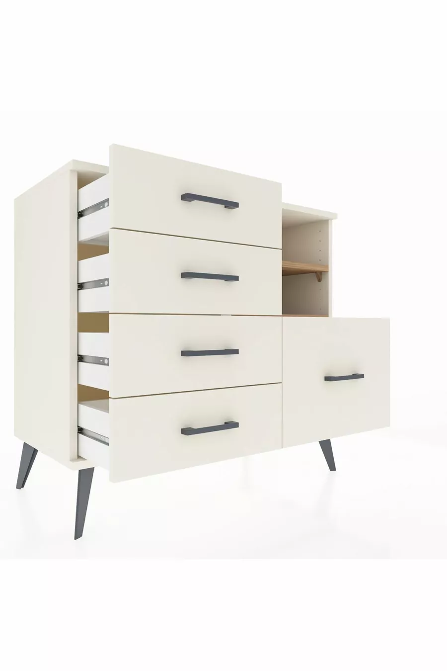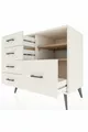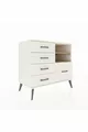 Kleur: Wit Materiaal: Suntalam Hoogte: 80 cm Breedte: 88 cm Diepte: 44 cm Aantal lades: 5 Productkenmerk: Met deksel Stijl: Modern Thema / Stijl: Modern Herkomst: TR