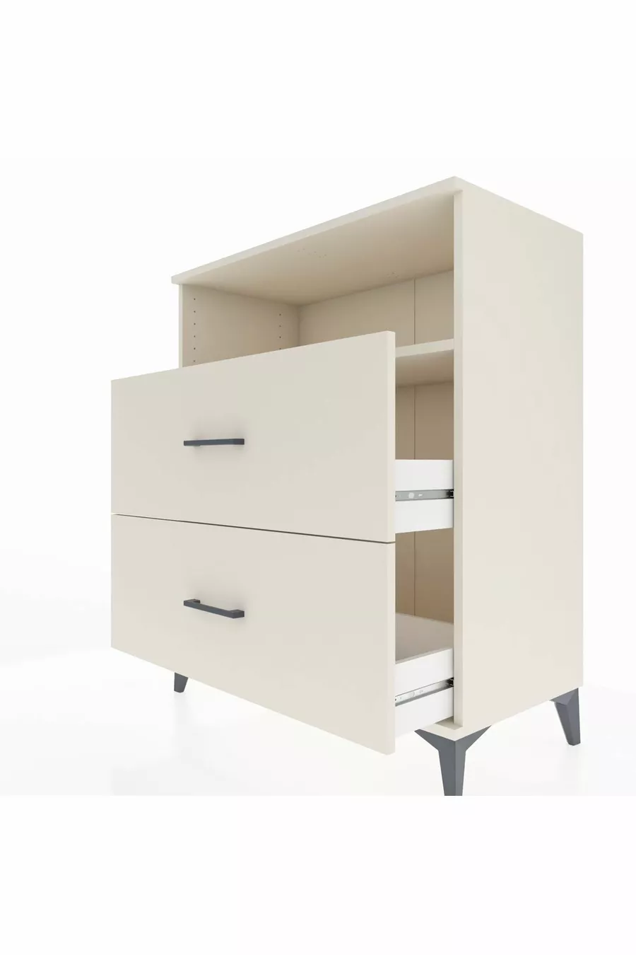 Kleur: Veelkleurig Materiaal: Spaanplaat Hoogte: 106 cm Breedte: 44 cm Diepte: 44 cm Aantal lades: 2 Productkenmerk: Met lades Stijl: Modern Thema / Stijl: Modern Oorsprong: TR
