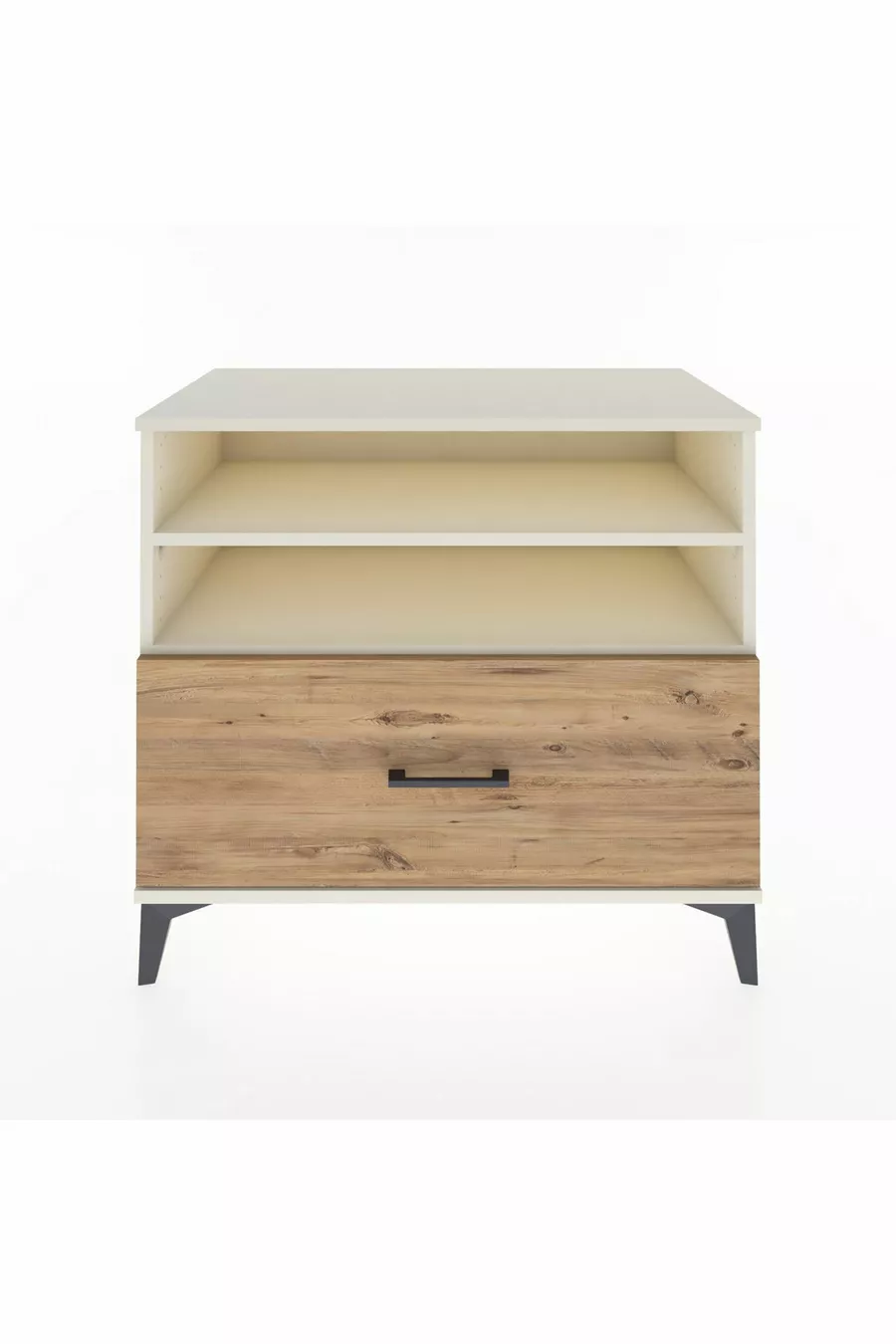 Kleur: Veelkleurig Materiaal: Spaanplaat Hoogte: 80 cm Breedte: 44 cm Diepte: 44 cm Aantal lades: 1 Productkenmerk: Met lade Stijl: Modern Thema / Stijl: Modern Herkomst: TR