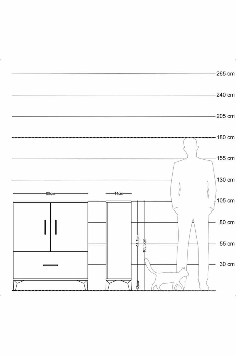 Kleur: Veelkleurig Materiaal: Spaanplaat Hoogte: 106 cm Breedte: 44 cm Diepte: 44 cm Aantal lades: 1 Productkenmerk: Met lade Stijl: Modern Thema / Stijl: Modern Herkomst: TR