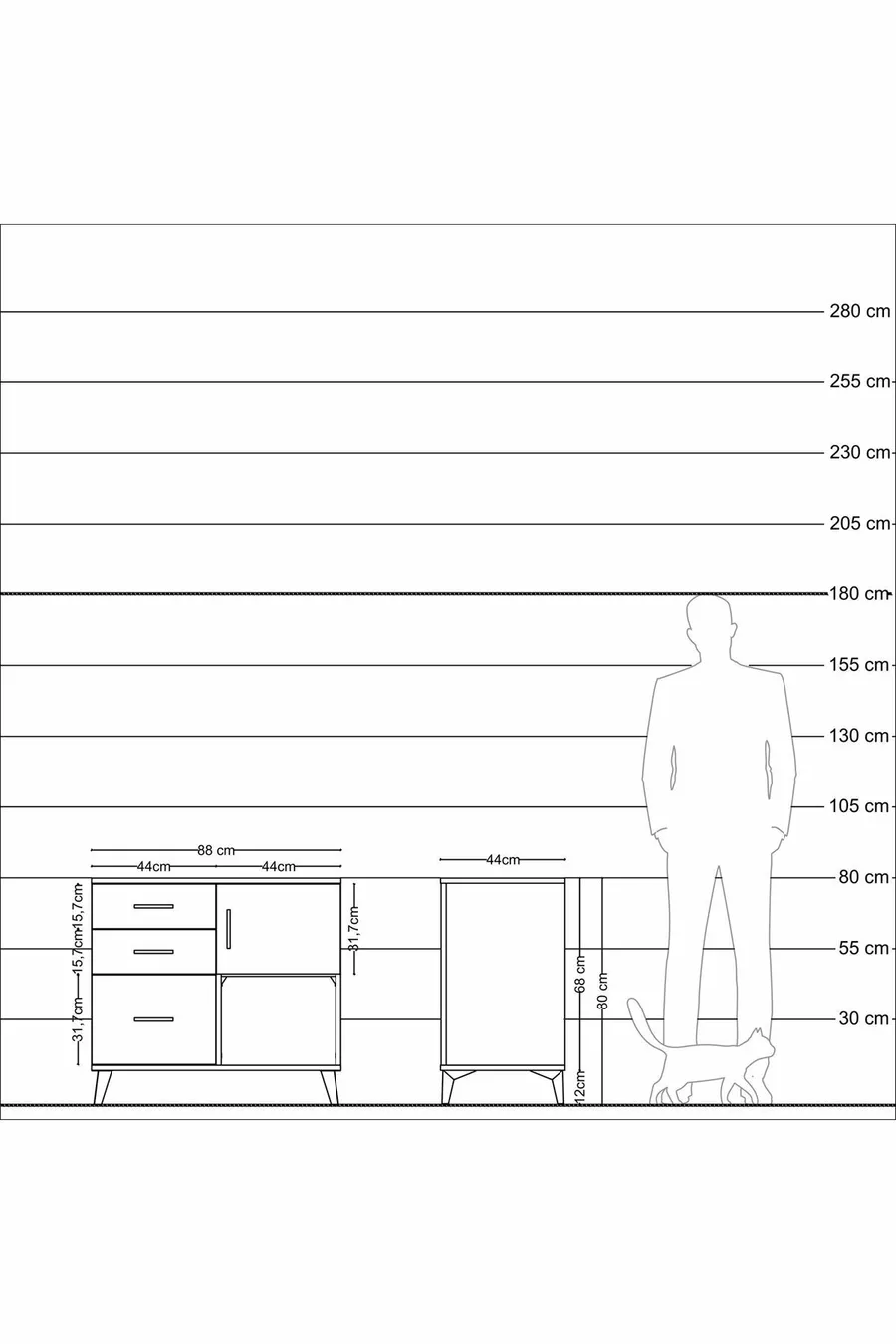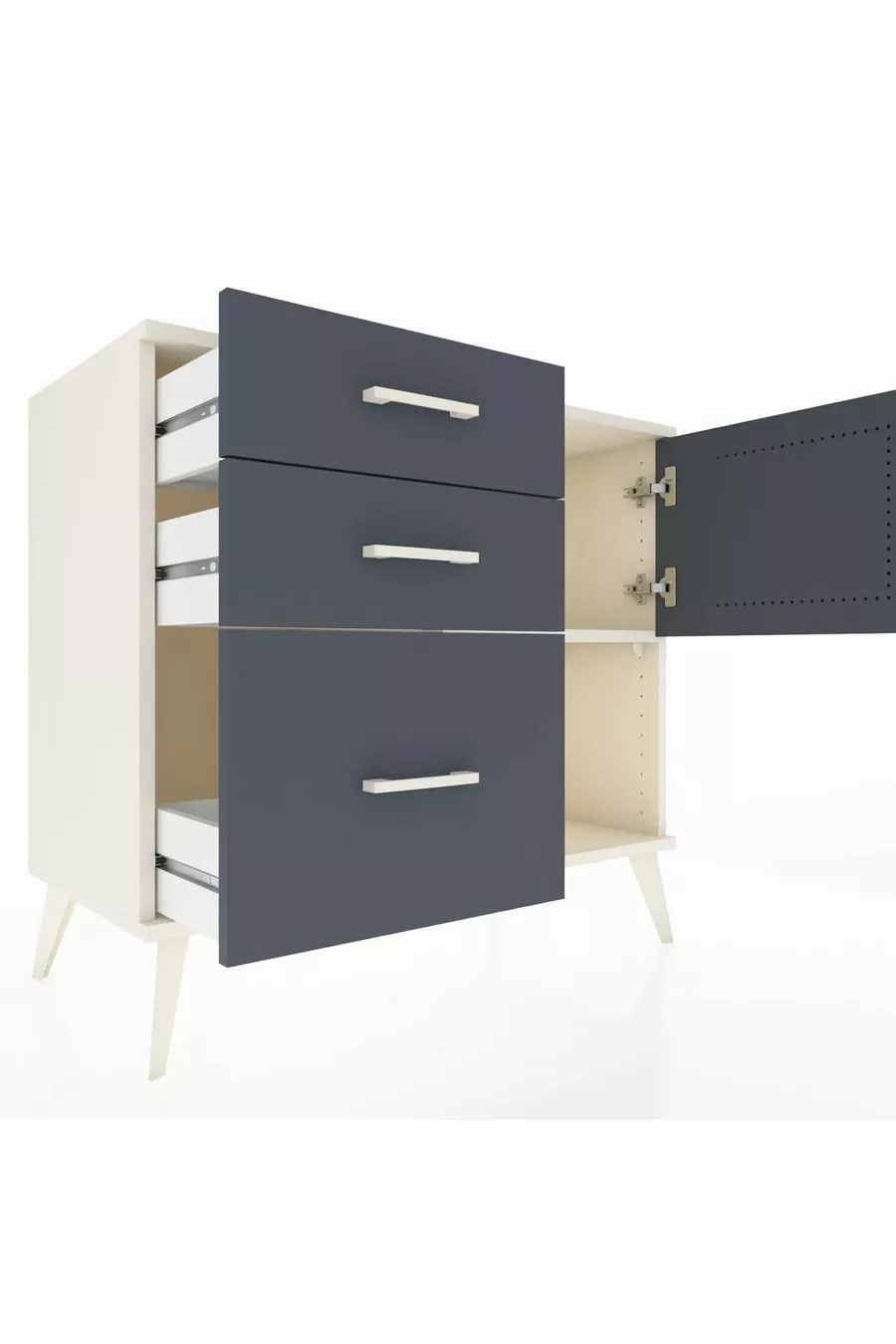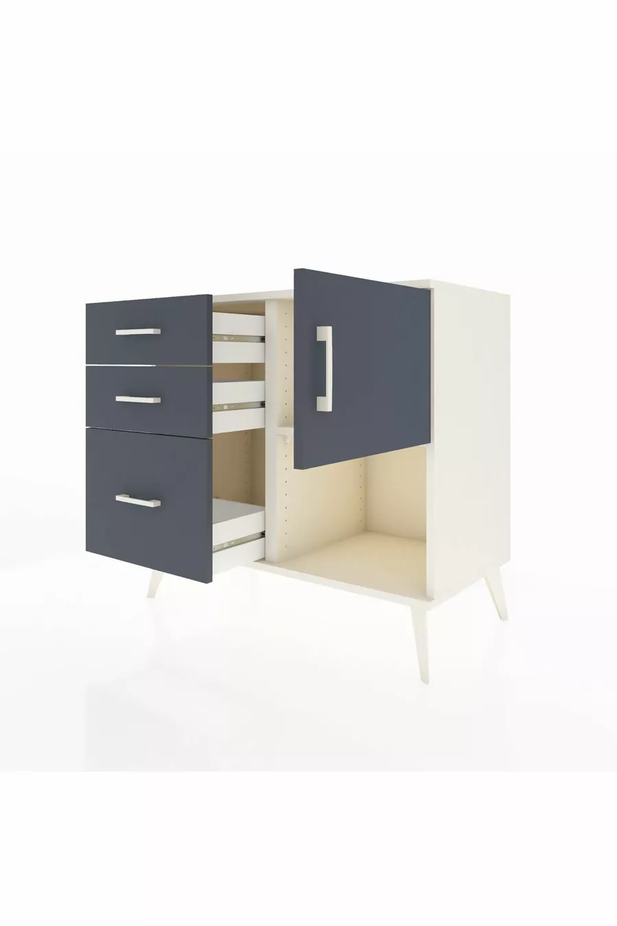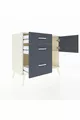 Kleur: Wit Materiaal: Spaanplaat Hoogte: 80 cm Breedte: 88 cm Diepte: 44 cm Aantal laden: 3 Productkenmerk: Met deksel Stijl: Modern Thema / Stijl: Modern Herkomst: TR