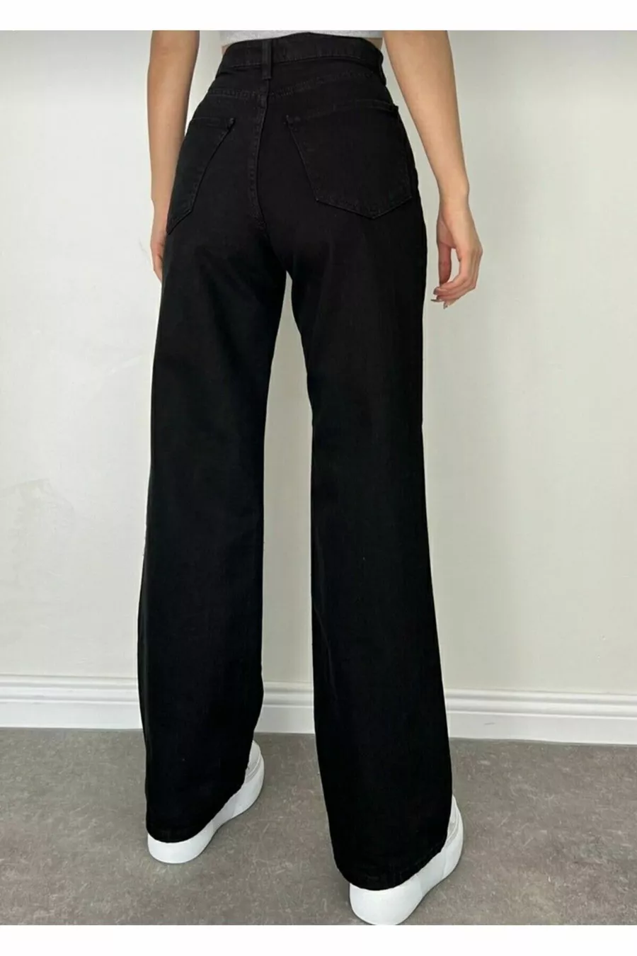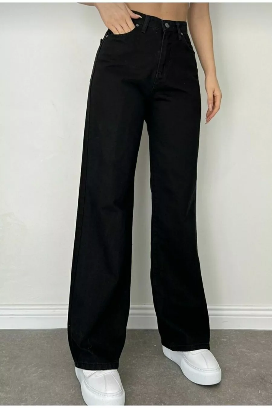 Riem/Gordelstatus: Zonder riem Broekspijp Type: Wijde pijp Taille: Hoge taille Kleur: Zwart Materiaal: Denim Zak: 5 zakken Producttype: Effen Collectie: Young Lengte: Normaal Stofsoort: Denim Silhouet: Wijde pijp Gebruik: Casual/Elke dag Pasvorm: Wijde pijp Patroon: Effen Extra kenmerk: Rekbaar Sluiting: Knop + rits Weefseltype: Denim Duurzaamheidsdetail: Ja Persona: Young Materiaalcomponent: 97% katoen, 3% elastaan Wasinstructies: type1 Doosstatus: Geen doos Pakketinhoud: Enkel