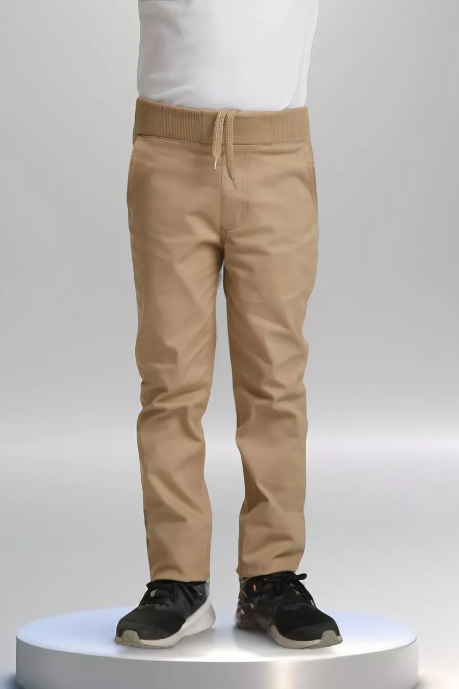 Jongens- en meisjesbroek met elastische ribbroekband, camel beige-zwart, rechte pijp, canvas schoolbroek ( jaar)