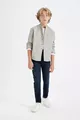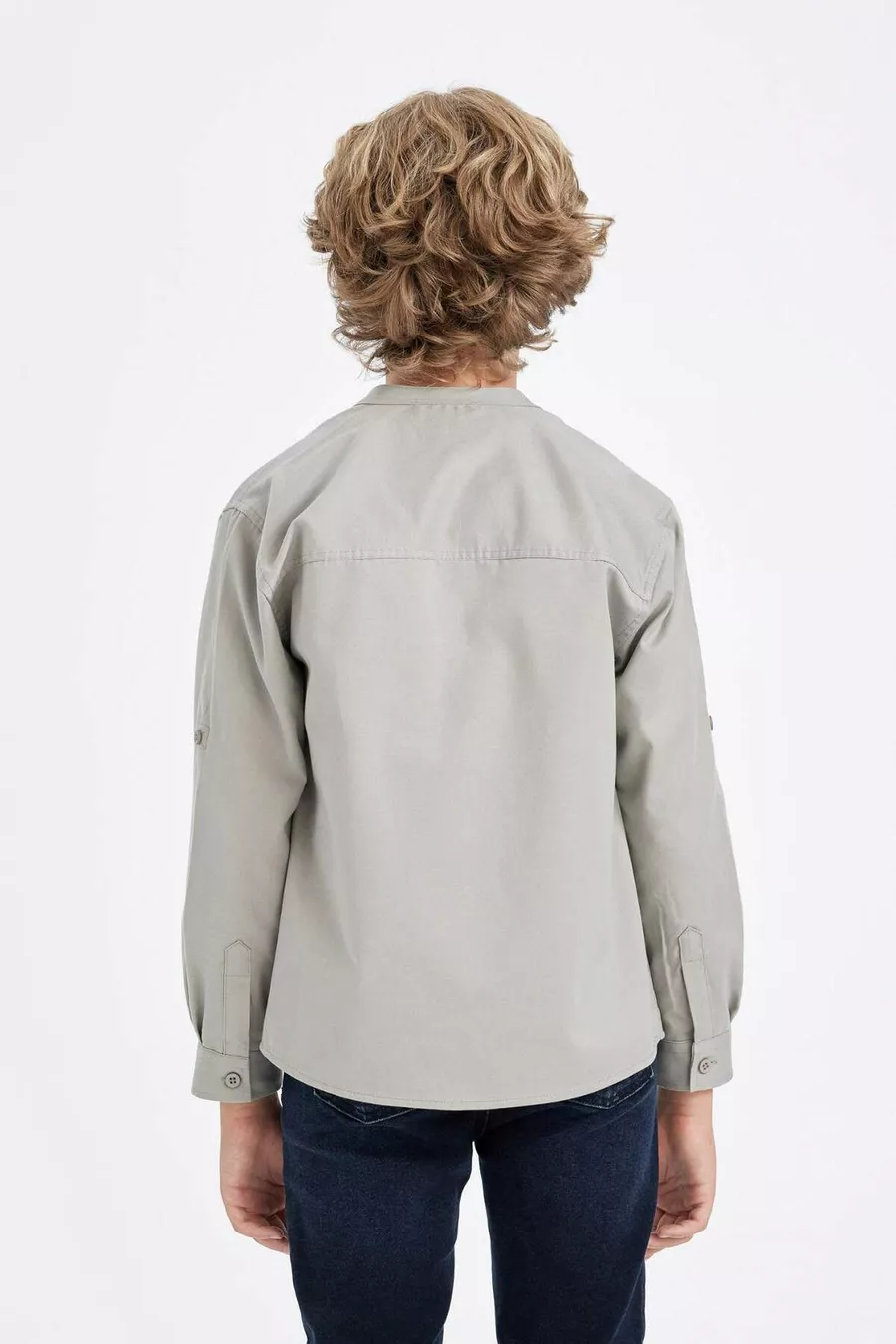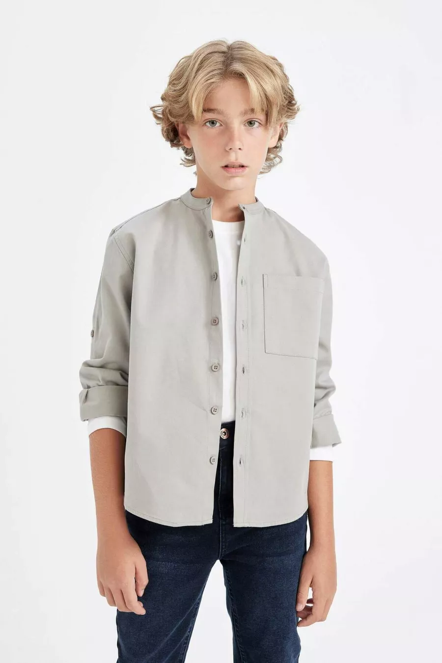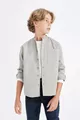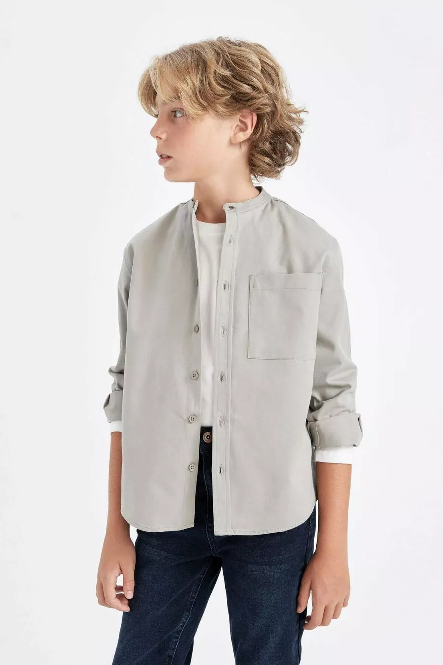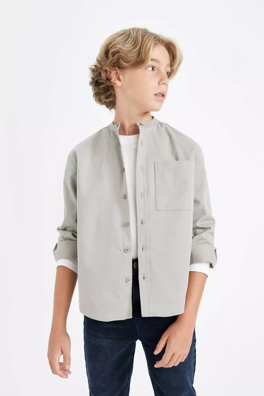 Jongens oversized losvallend model met opstaande kraag twill lange mouwen shirt AU