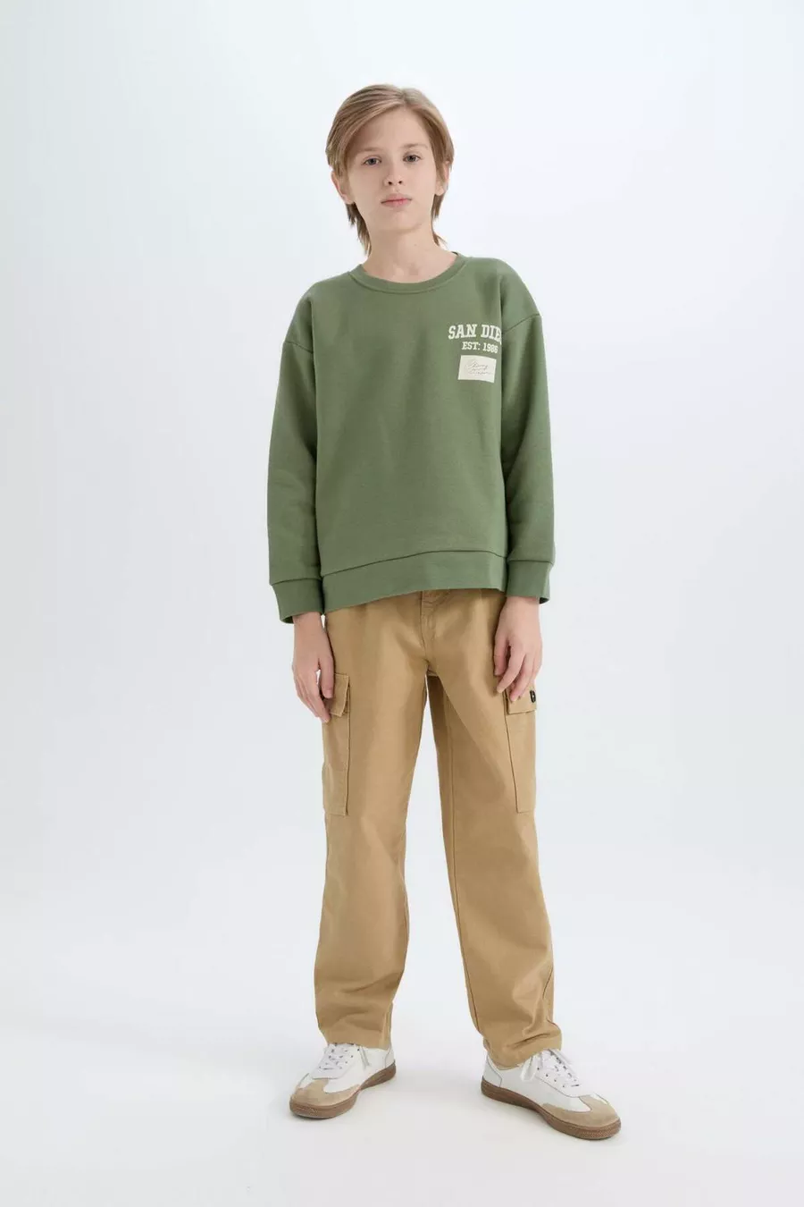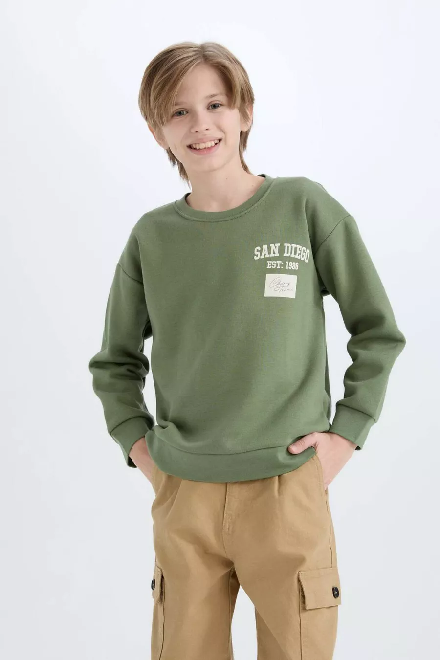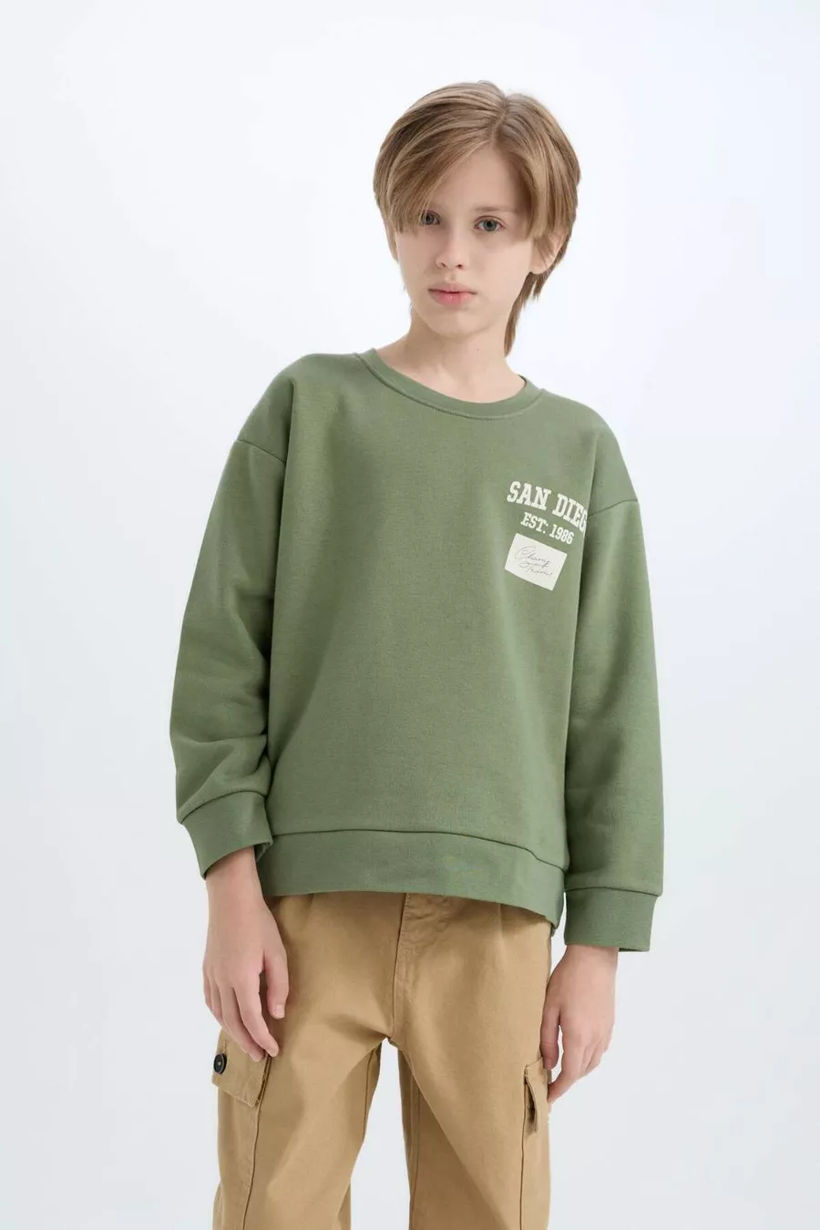 Jongens oversized losvallend sweatshirt met ronde hals en rugprint WN