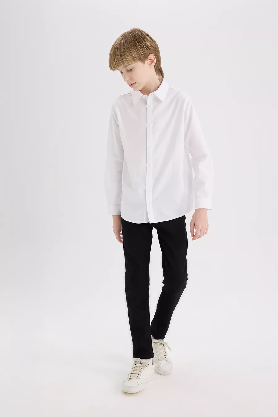 Patroon: Effen Pasvorm: Regular Kraagtype: Overhemdkraag Stofsoort: Geweven Mouwtype: Lange mouw Kleur: Wit Materiaal: Katoen Sluitingstype: Met knopen Productdetails: Met knopen Zak: Zonder zakken Mouwlengte: Lang Lengte: Regular Gelegenheid: Casual/Alledaags Silhouet: Basic Weeftype: Popeline Duurzaamheidsdetails: Nee Materiaalcomponent: 100% Paspop Wasvoorschrift: Type 3 Herkomst: TR Inhoud van de verpakking: Enkel