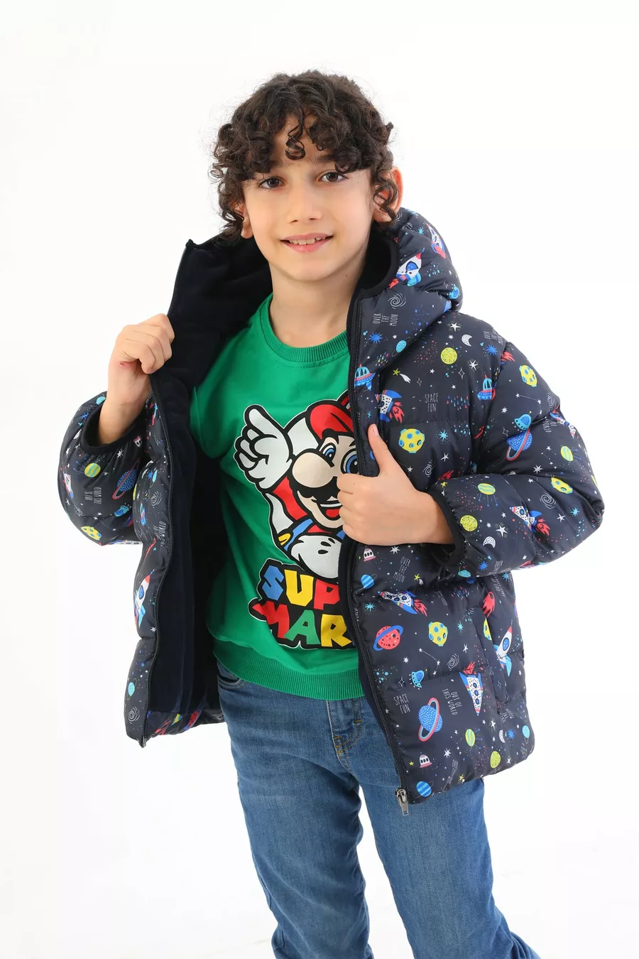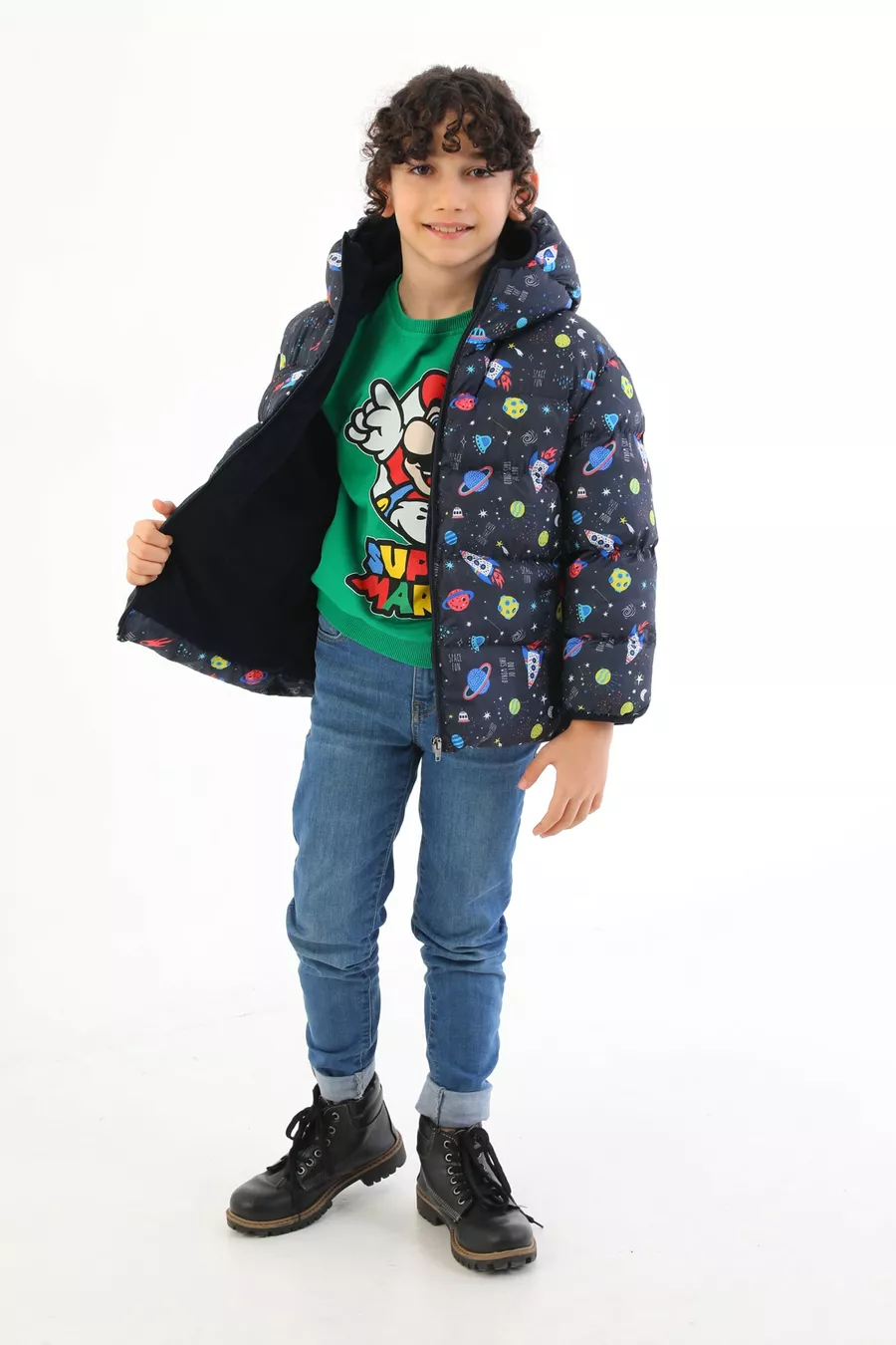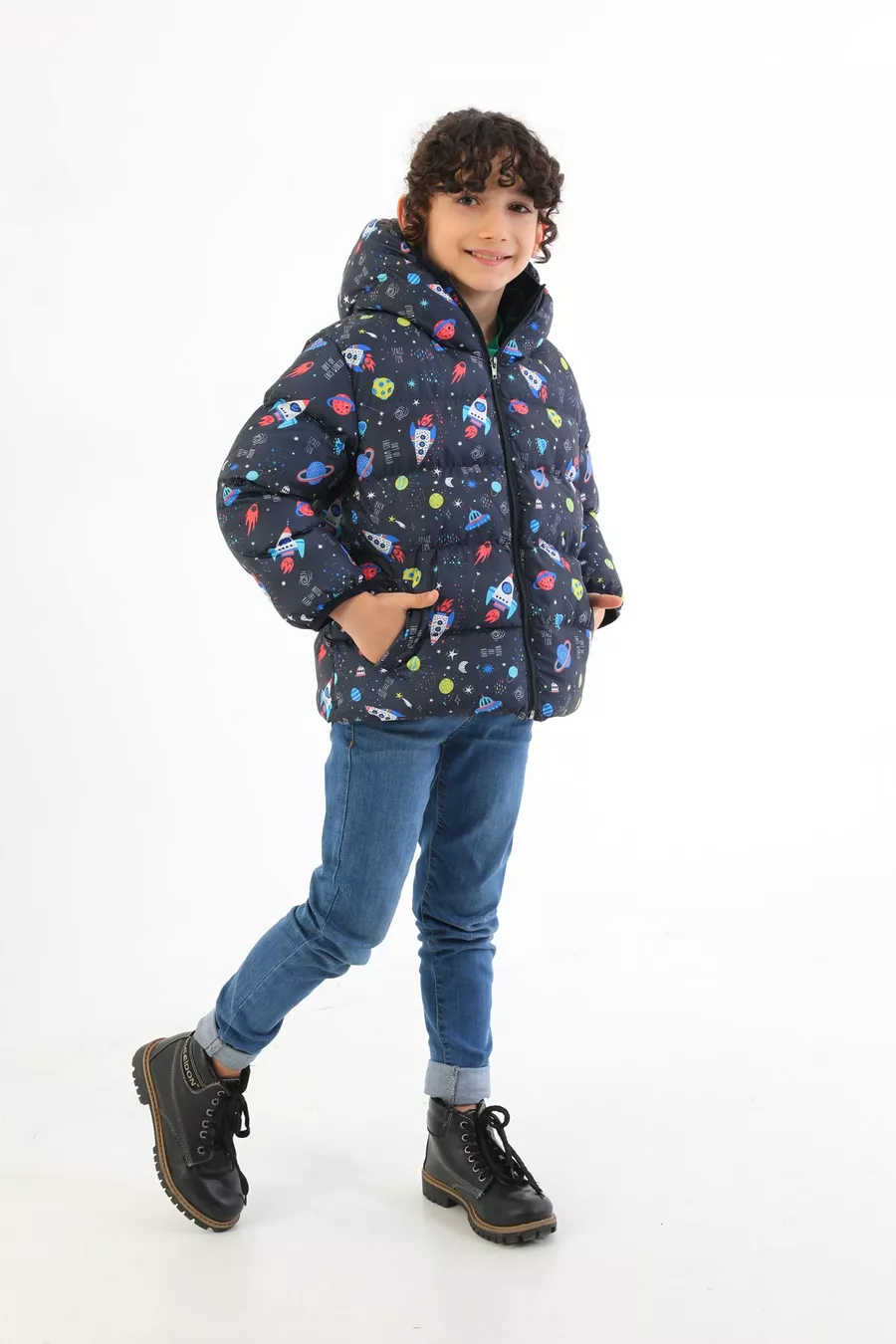 Pasvorm: Regular Kraagtype: Met capuchon Materiaal: Polyester Kleur: Donkerblauw Sluitingstype: Ritssluiting Patroon: Geprint Productdetails: Gevoerd Producttype: Effen Mouwlengte: Lang Mouwtype: Lange mouw Voering: Gevoerd Lengte: Regular Geschikt voor: Dagelijks gebruik Silhouet: Gewatteerd Techniek: Fleece Extra kenmerk: Waterdicht Duurzaamheidsdetail: Nee Riem/ceintuur: Zonder riem Vulling materiaal: Polyester Print/borduurtechniek: Digitale print Weefseltype: Fleece Wasinstructie: Type 2 Doosstatus: Geen doos