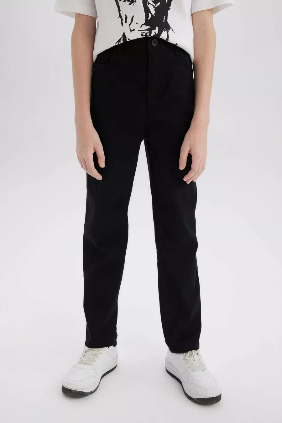 Materiaal: Katoen Stoftype: Geweven Pijptype: Rechte pijp Taille: Normale taille Patroon: Effen Kleur: Zwart Zak: 5 Zakken Productdetails: Met knopen Collectie: Basic Voering: Zonder voering Lengte: Regular Silhouet: Losvallend Omgeving: Casual/Alledaags Pasvorm: Regular Weeftechniek: Gabardine Druk/Borduurtechniek: Zonder print Riem/Strik: Zonder riem Duurzaamheidsdetails: Nee Materiaalcomponent: 97% Katoen, 3% Elastaan Wachttips: Type 3 Herkomst: TR Doosstatus: Geen doos