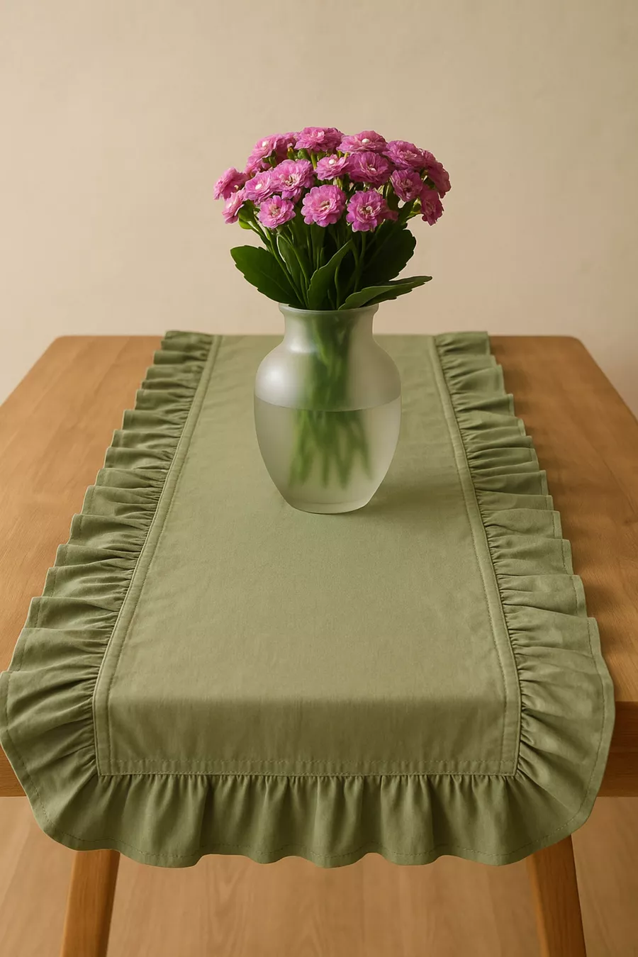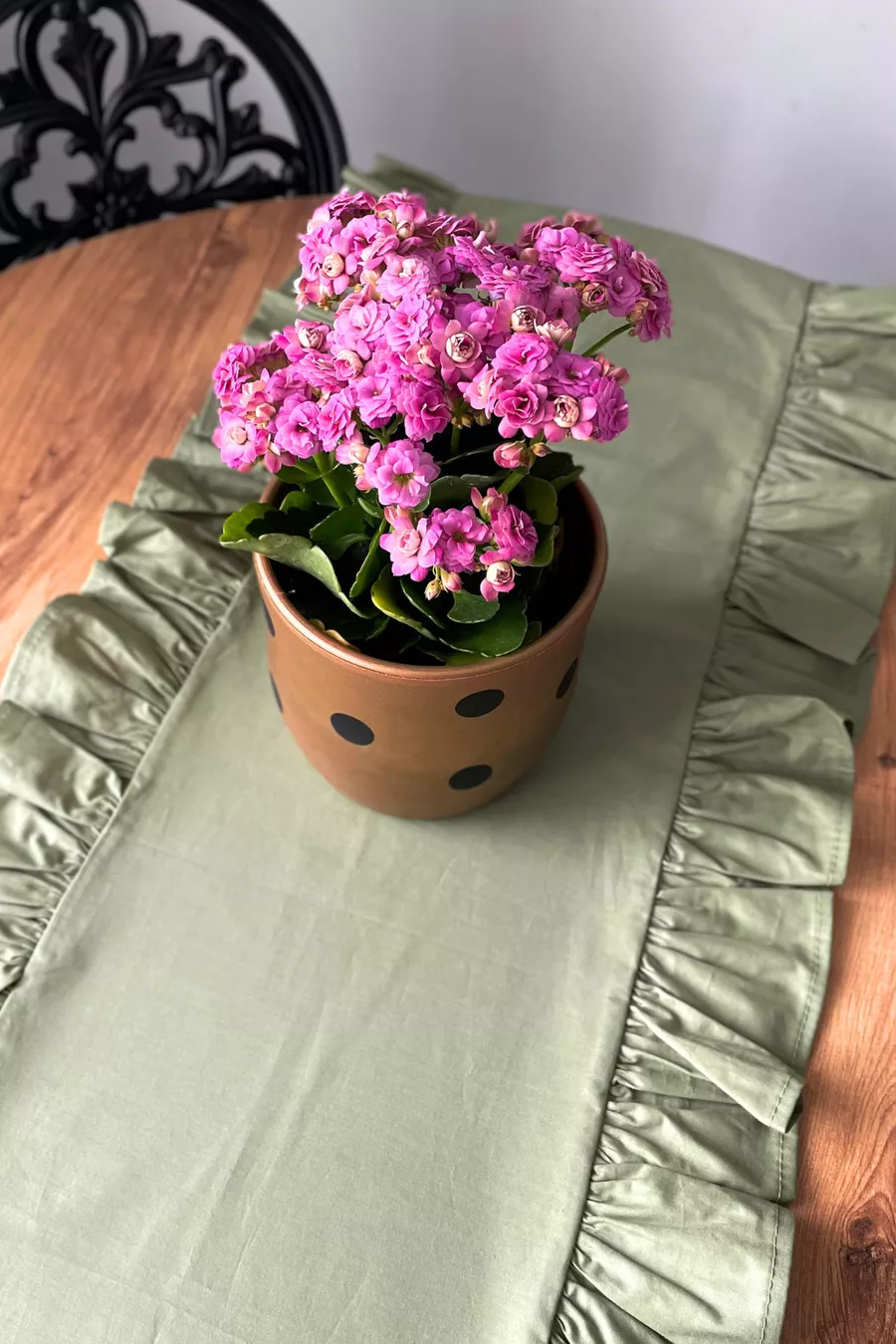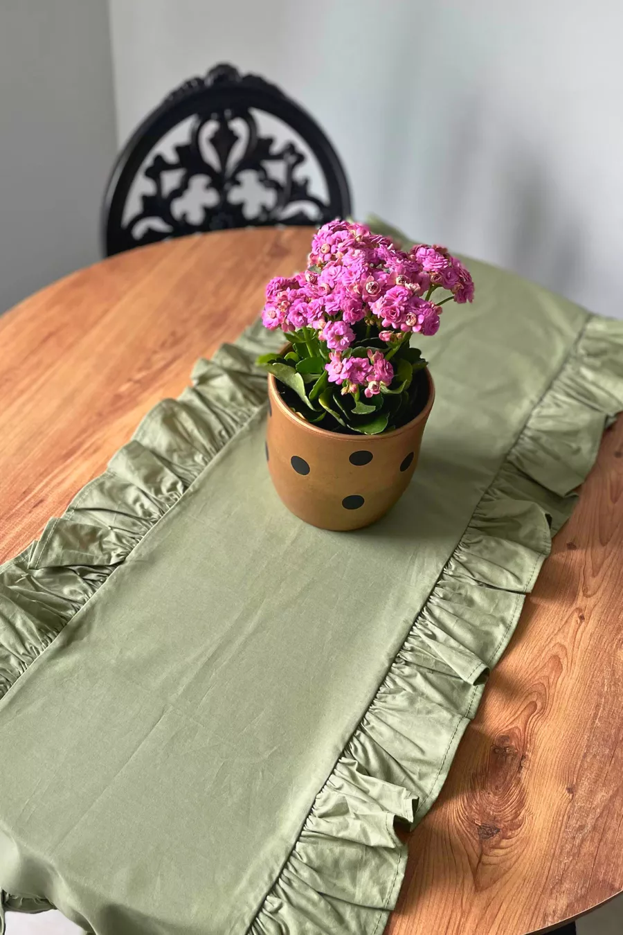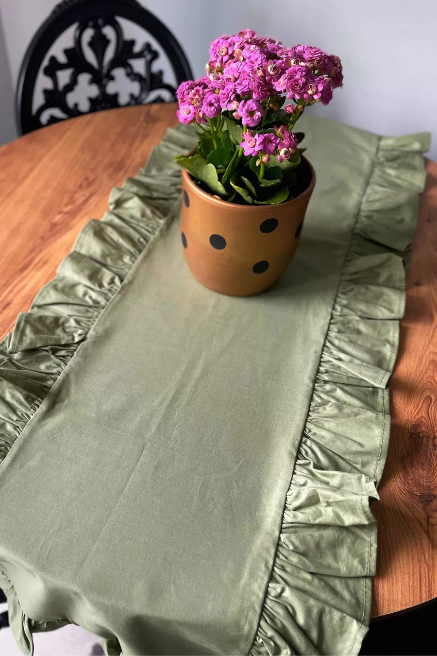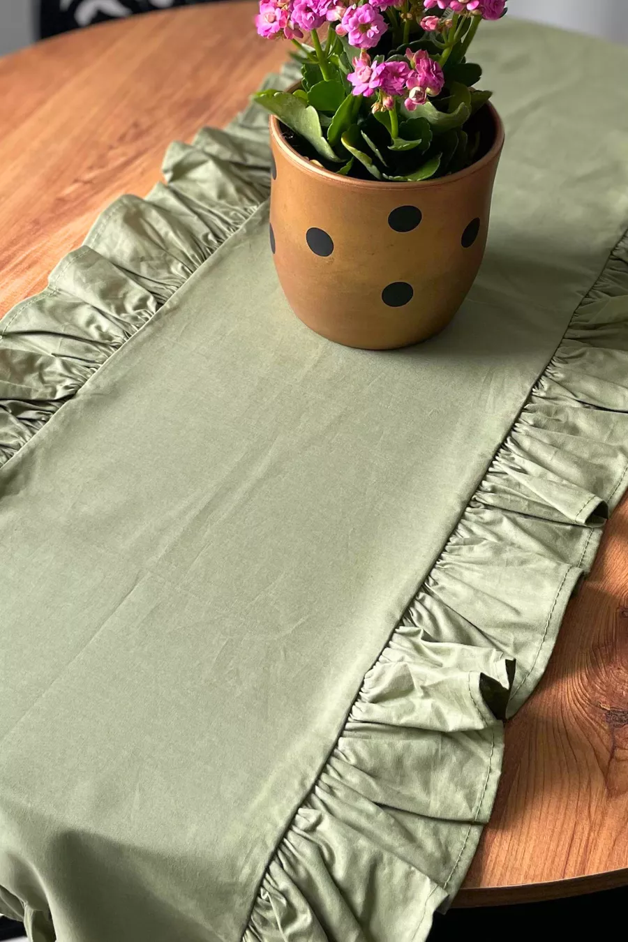 Afmeting: 40 x 110 Vorm: Rechthoek Kleur: Khaki Materiaal: Katoen Aantal stuks: 1 Wasinstructies: Wassen op 30 graden Materiaal samenstelling: 100% katoen Land van herkomst: TR Onderhoudsinstructies (Algemeen): Afnemen met een vochtige doek.