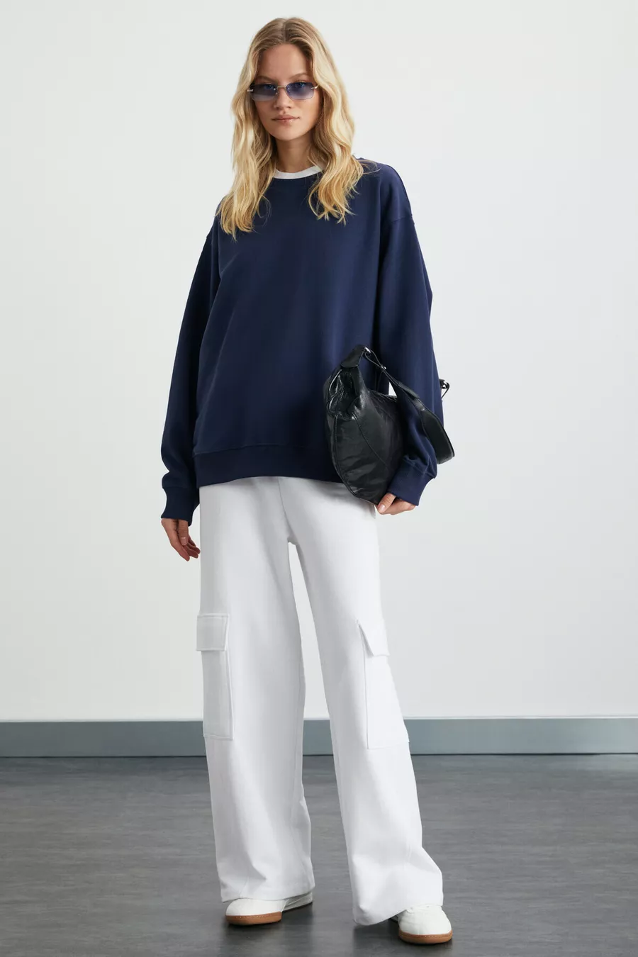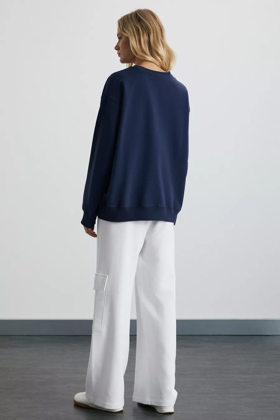 Karıus Dames Organisch Katoen Fleece Voering Oversized Ronde Hals Navy Sweatshirt