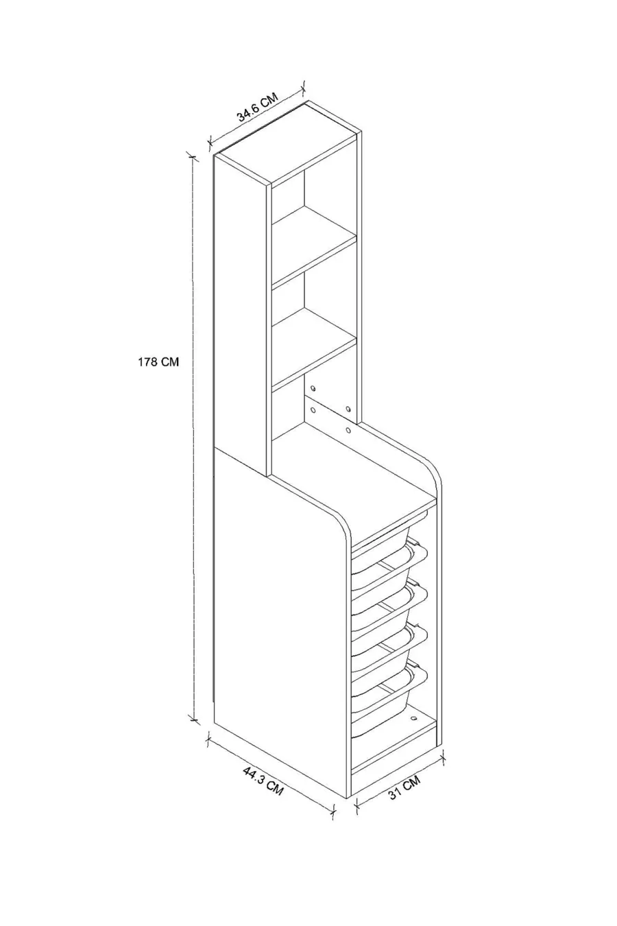 Materiaal: Suntalam Aantal laden: 5 Breedte: 34 cm Diepte: 44 cm Hoogte: 178 cm Kleur: Bruin Thema / Stijl: Modern Land van herkomst: TR Leeftijd: Anders Kenmerk: Met planken
