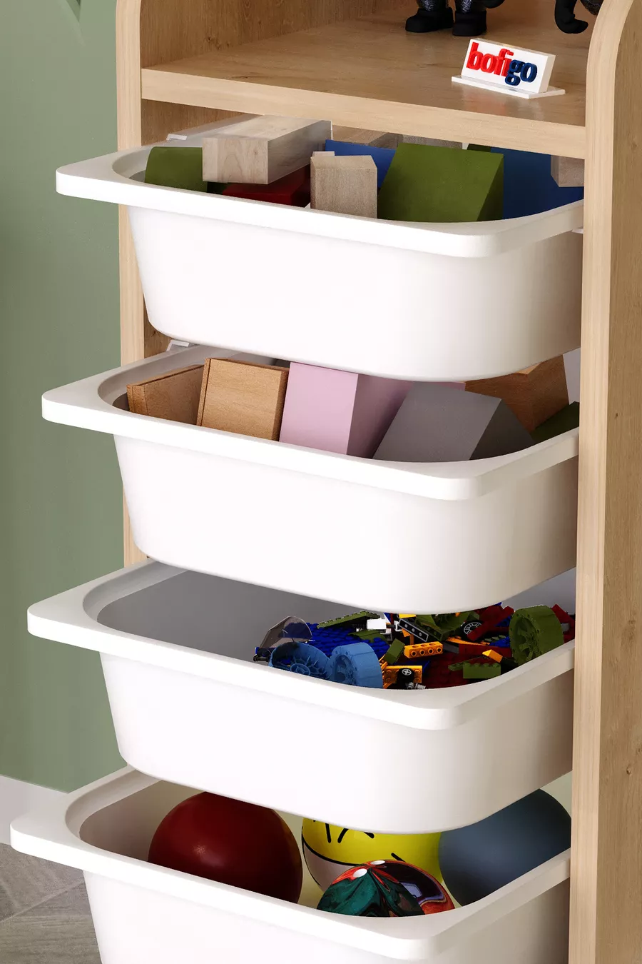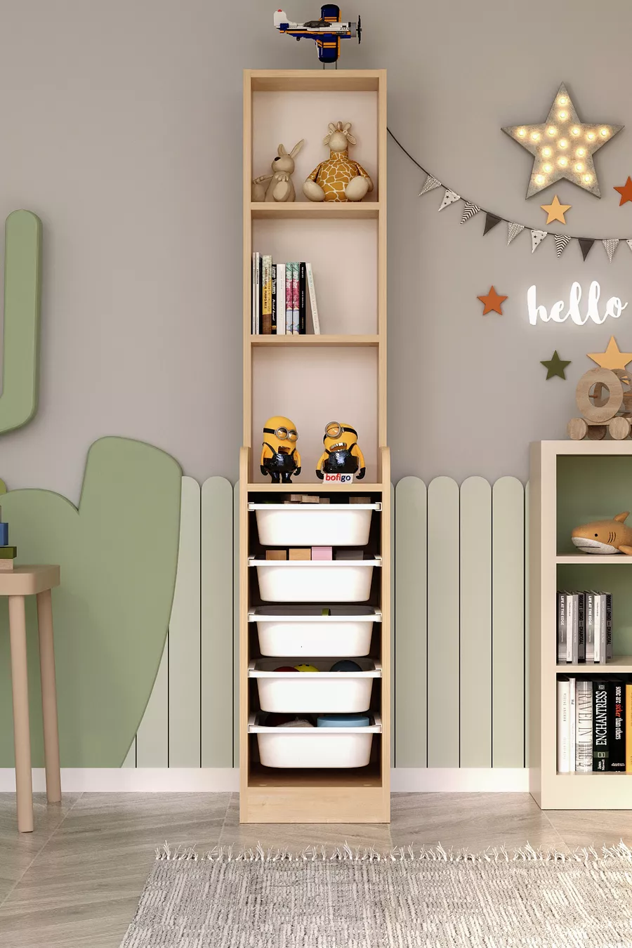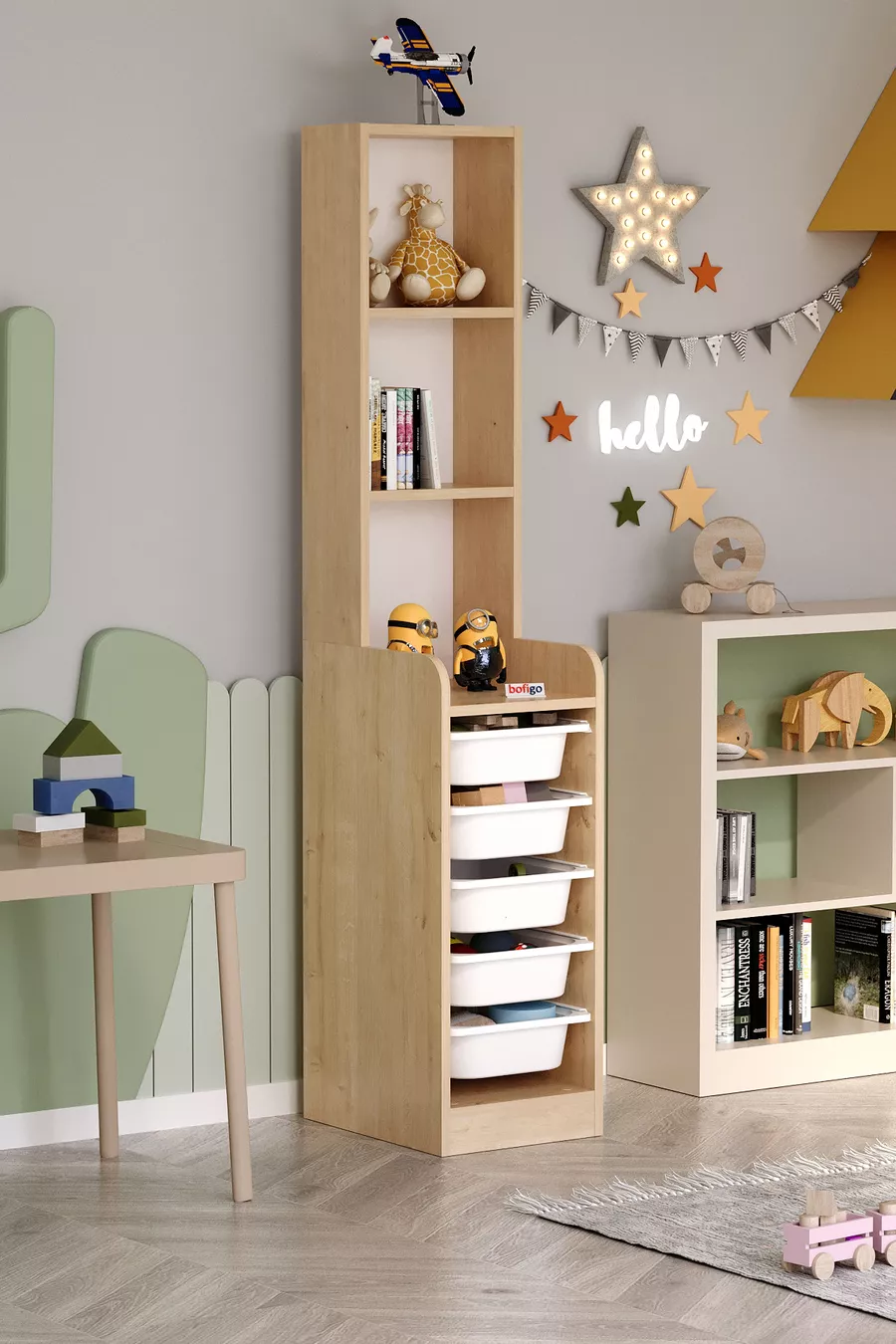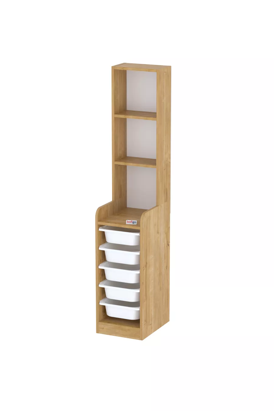 Kast met 5 manden en 3 planken, multifunctionele kast, speelgoedkast, Derya Safir Eik