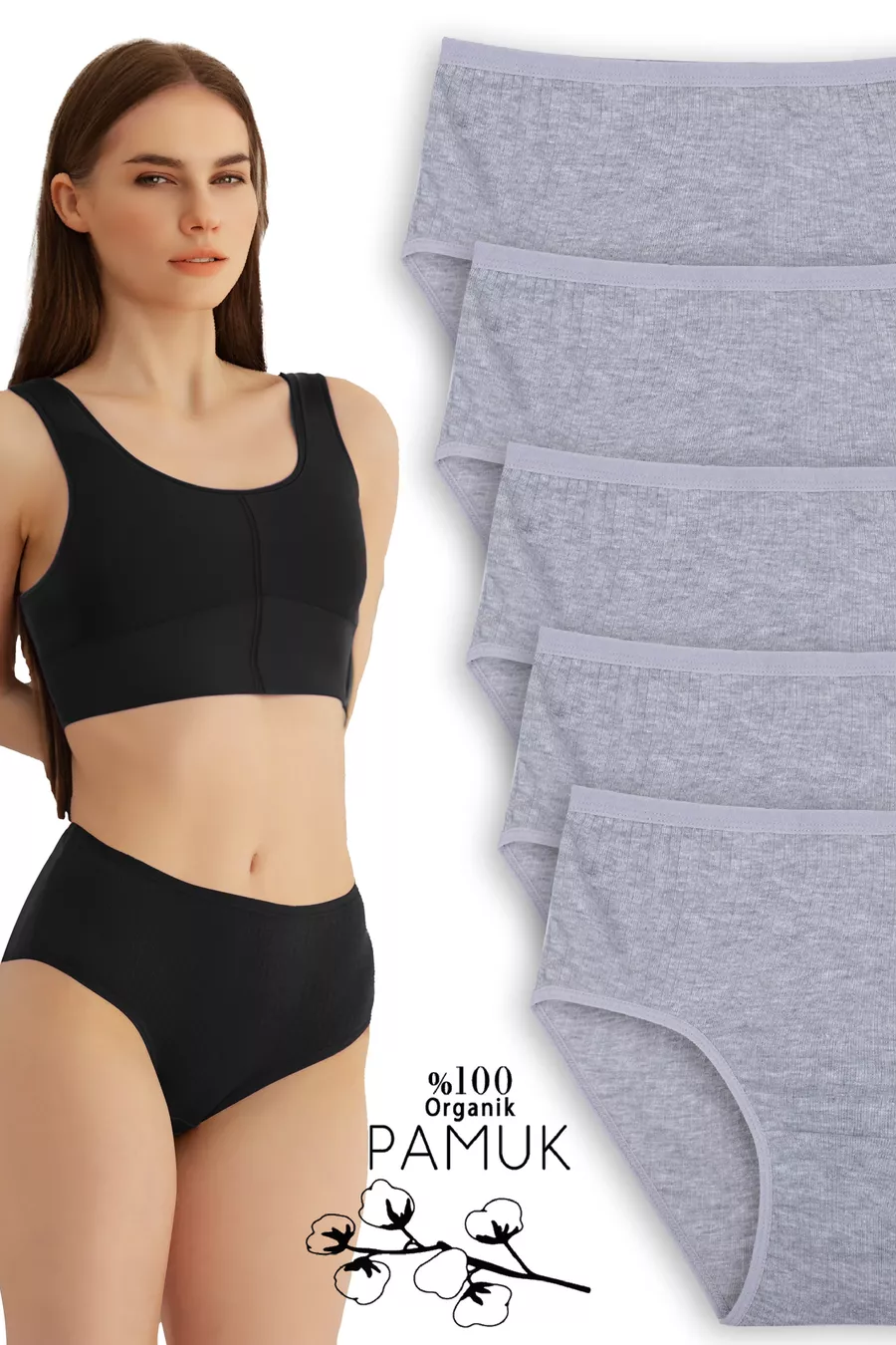 % Katoen 5-stuks Hoge Taille Dames Grijze Onderbroek