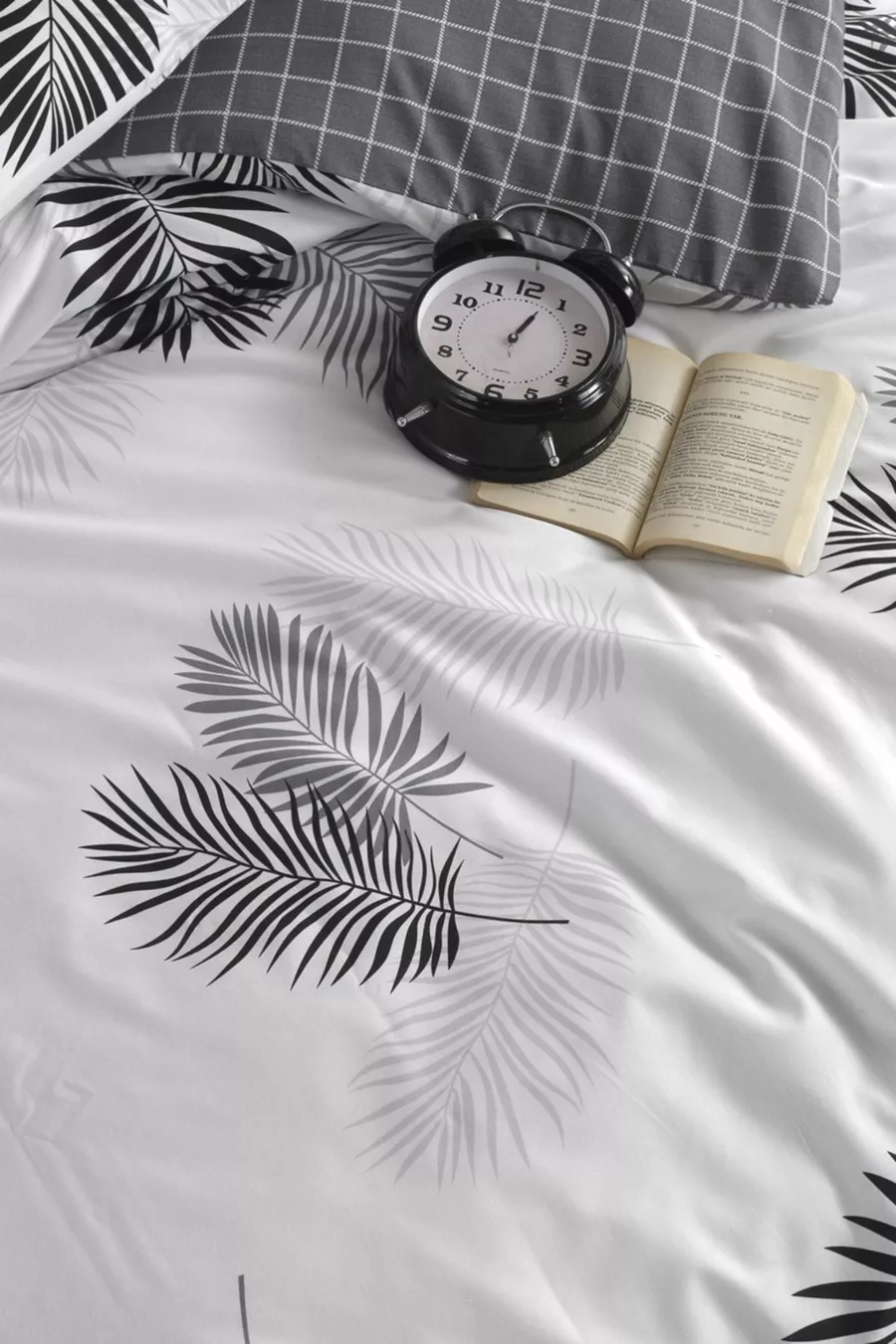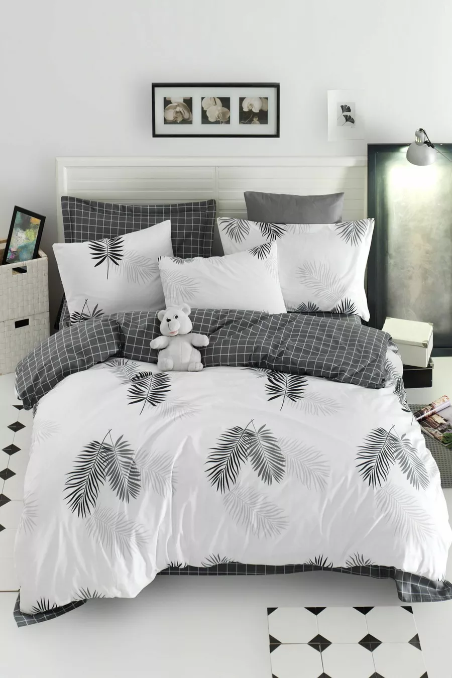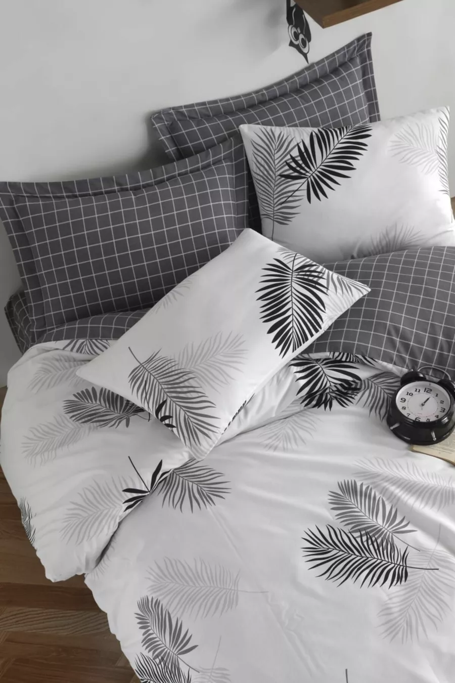Katoenen Beddengoedset Tweepersoons Pipong Wit-grijs