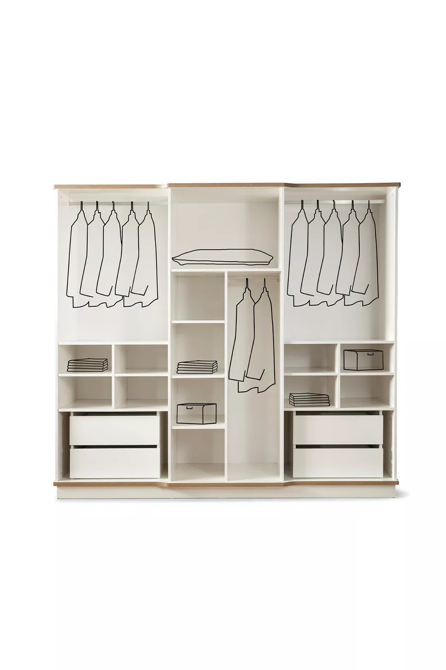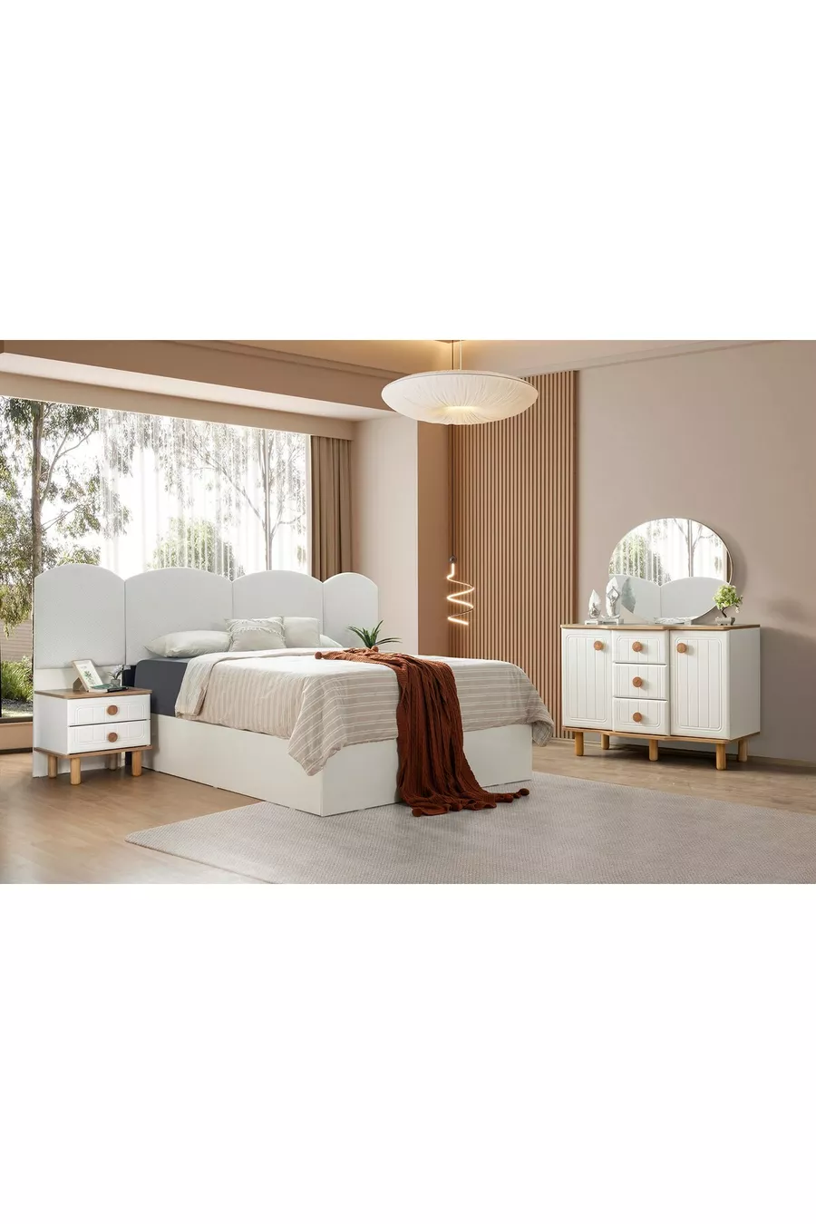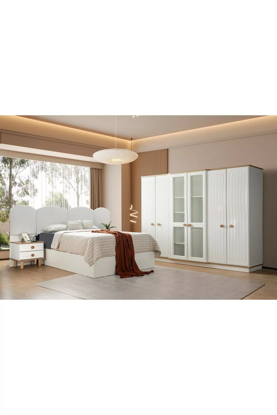 Setinhoud: Bed met lade + 2 nachtkastjes + ladekast + kast