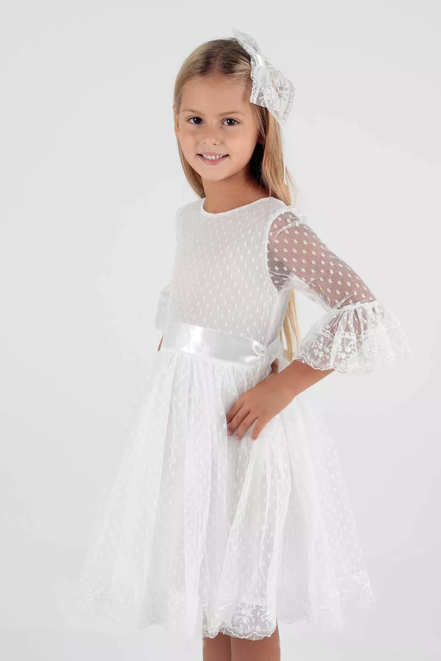 Kids Meisjes Feestjurk Met Gesp En Tule Kant Trend