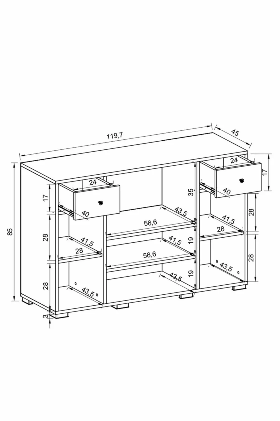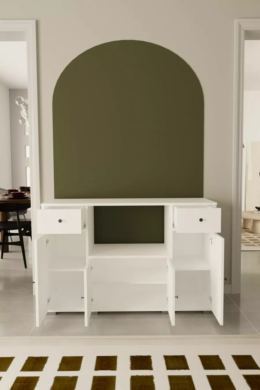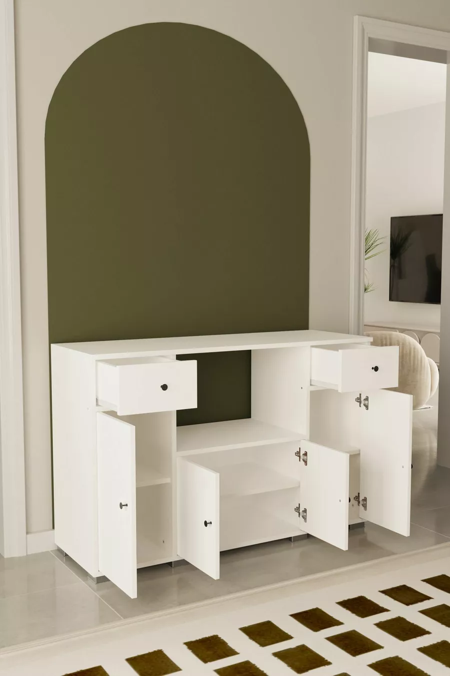 Materiaal:Suntalam Aantal lades:1 Kleur:Wit Model:Horizontaal Hoogte:85 cm Breedte:120 cm Diepte:43 cm Garantietermijn:1 jaar Stijl:Scandinavisch Thema / Stijl:Scandinavisch Herkomst:TR Kenmerk:Met lade
