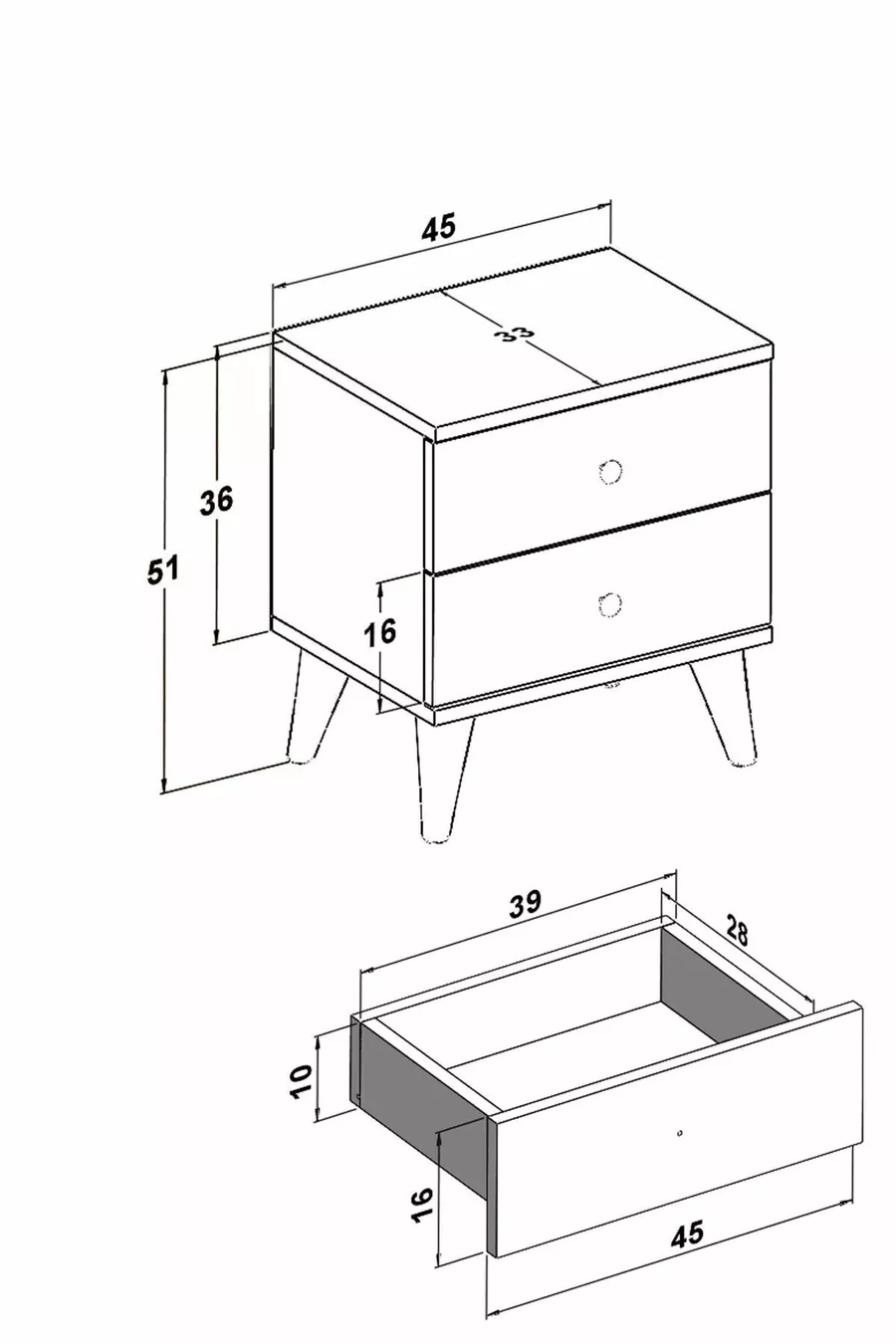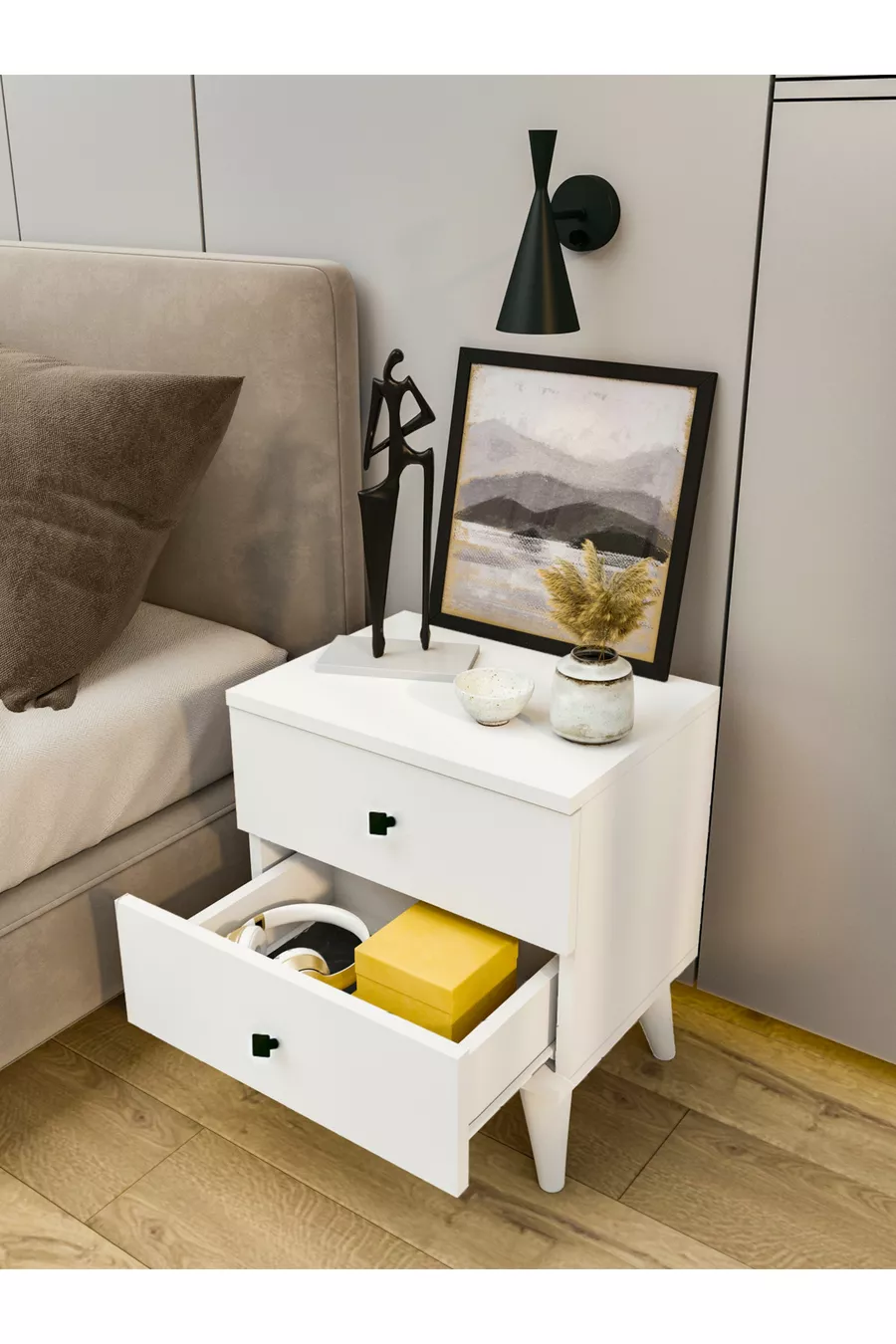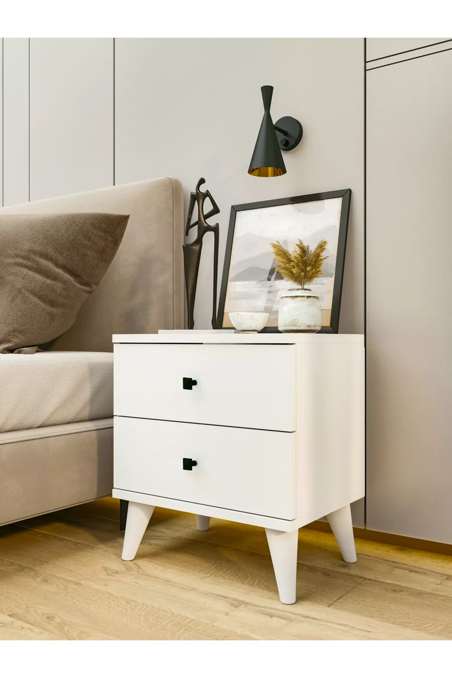 Komodin Parlak Beyaz 2 Çekmeceli Komodin Yatak Odası