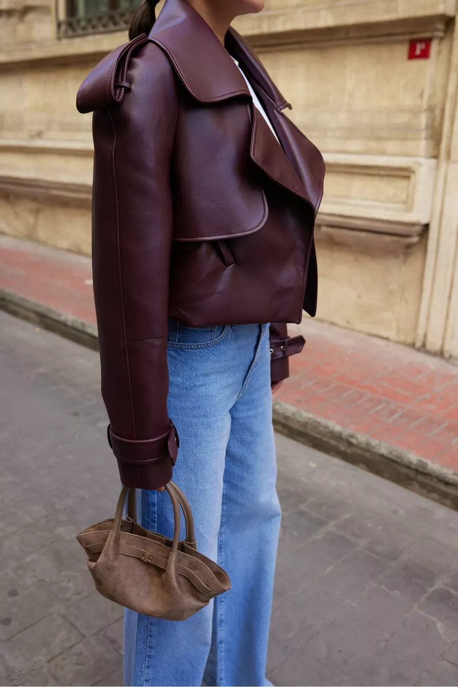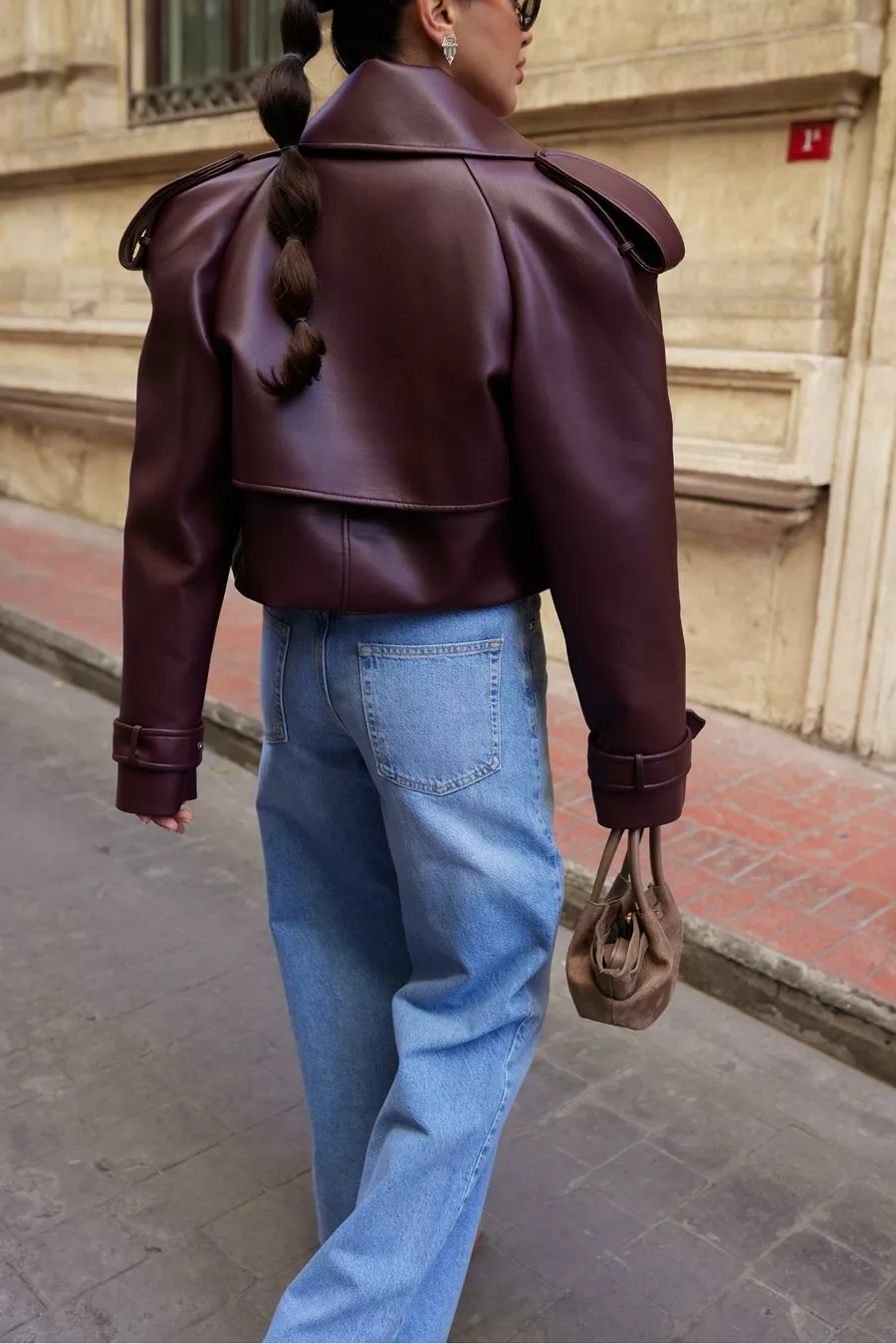 Mouwtype: Lange mouw Patroon: Effen Pasvorm: Regular Kraagtype: Blazerkraag Materiaal: Polyester Stofsoort: Geweven Kleur: Bordeaux Sluiting: Ritssluiting Productdetails: Gevoerd Zak: Dubbele zakken Mouwlengte: Lang Dikte: Medium Voering: Gevoerd Lengte: Kort Silhouet: Basic Gebruiksomgeving: Casual/Alledaags Extra functie: Geen extra functie Wevingssoort: Kunstleer Duurzaamheidsdetail: Nee Riem/ceintuur: Zonder riem Producttype: Effen Materiaalcomponent: 100% Polyester Wasvoorschrift: Type 2 Seizoen: Lente / Herfst Herkomst: TR Doos status: Zonder doos