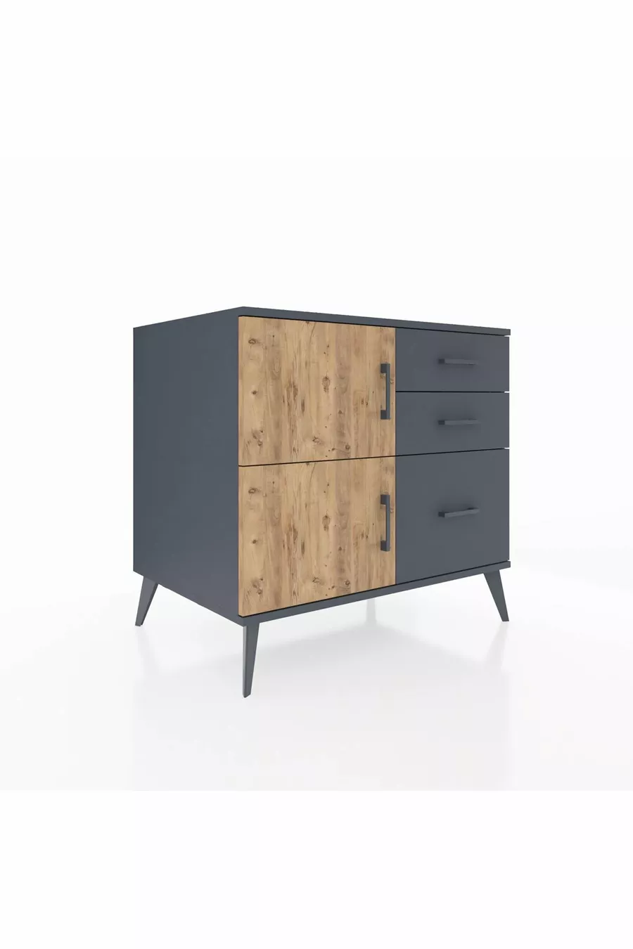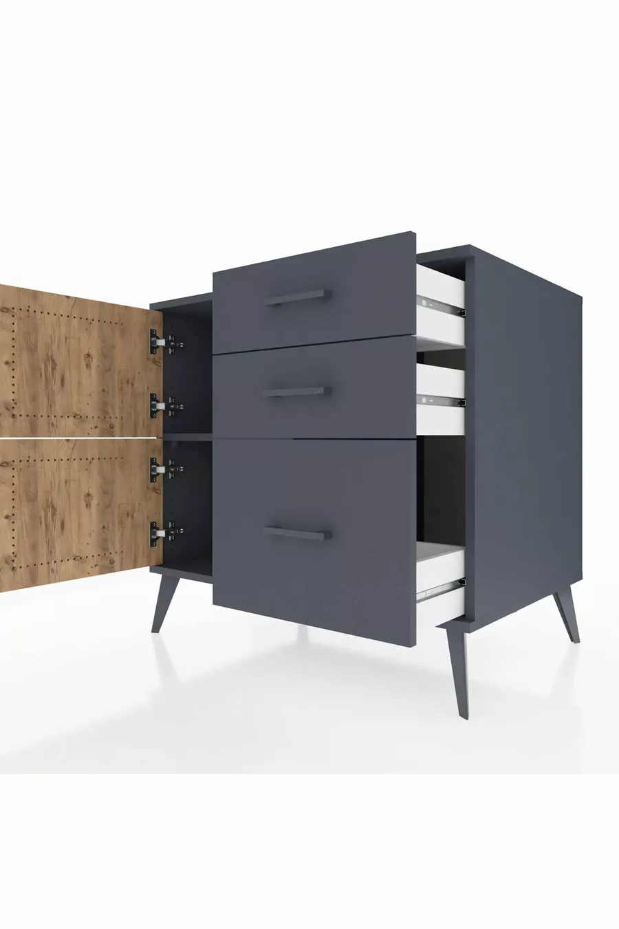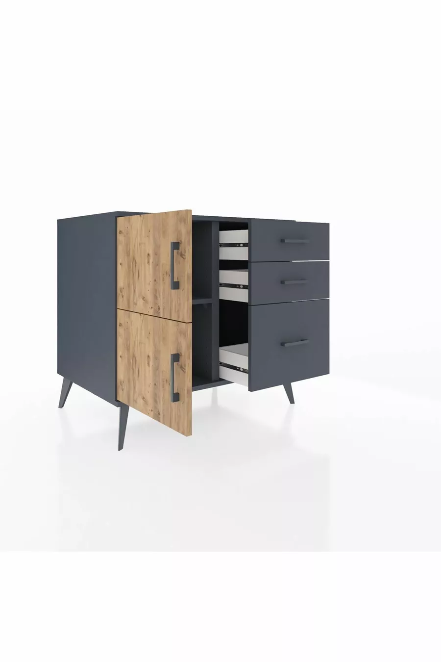 Kronos Dressoir Met Één Plank, 3 Lades, 2 Deuren, Antraciet-Berk/Antraciet