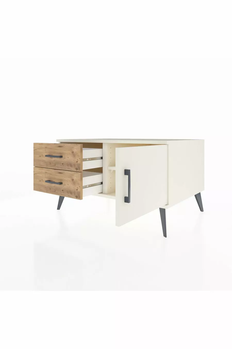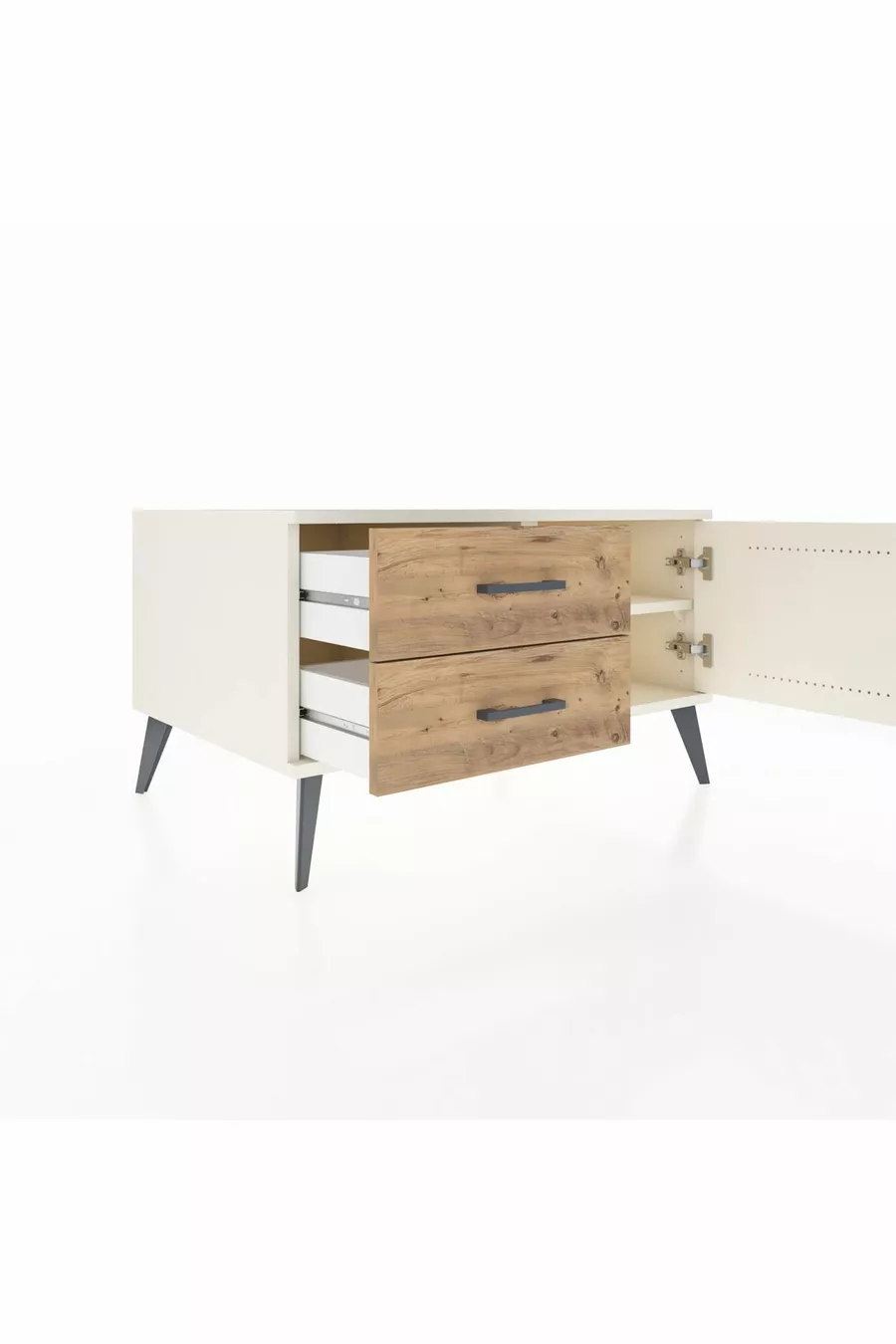 Kronos Dressoir Enkel Plank 2 Lade Eén Deur Zandsteen-Zandsteen/Den