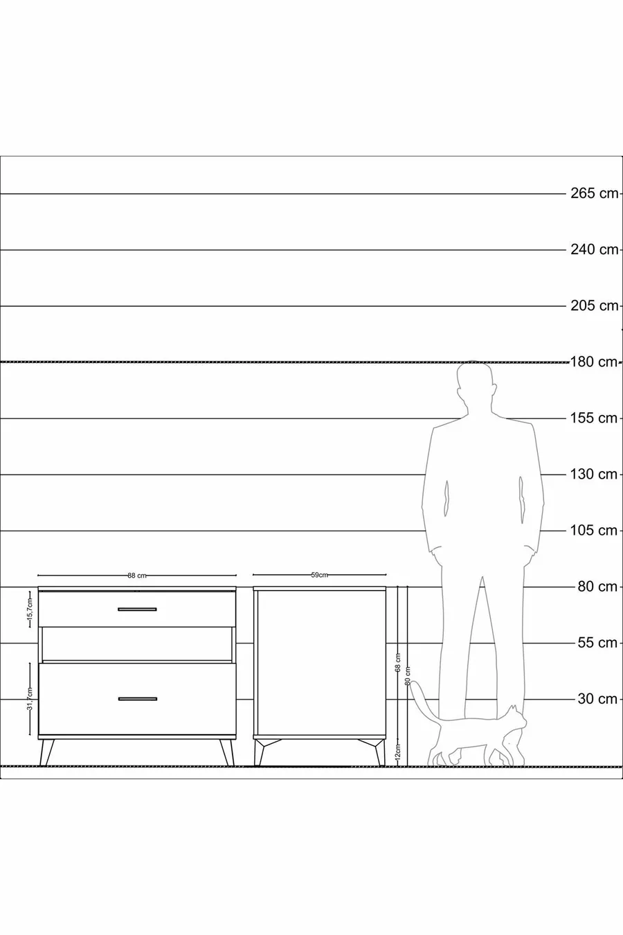 Kleur: Veelkleurig Materiaal: Spaanplaat Hoogte: 80 cm Breedte: 88 cm Diepte: 59 cm Aantal lades: 2 Productkenmerk: Met lades Stijl: Modern Thema / Stijl: Modern Oorsprong: TR