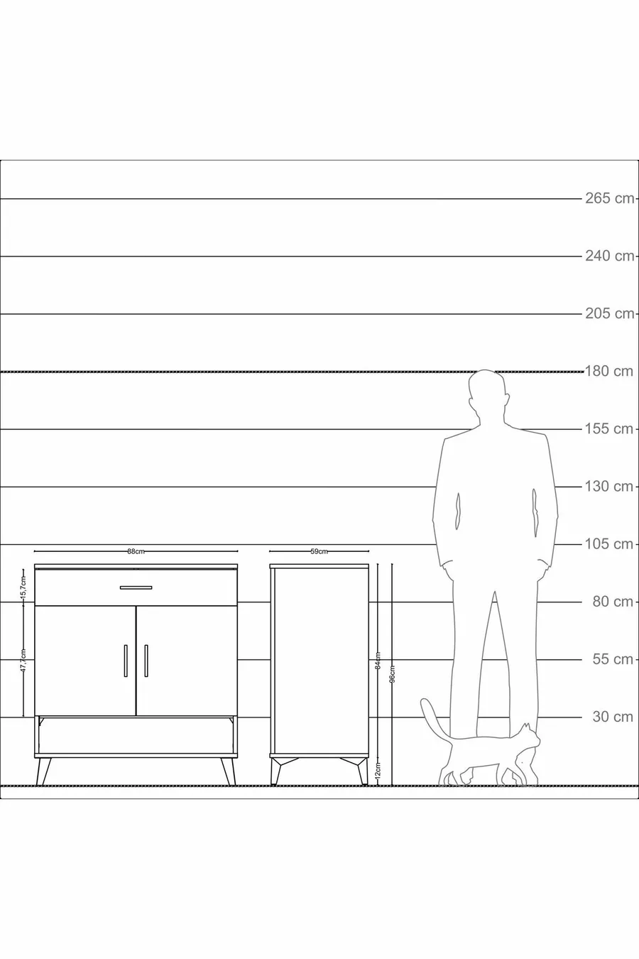 Kleur: Veelkleurig Materiaal: Spaanplaat Hoogte: 96 cm Breedte: 88 cm Diepte: 59 cm Aantal lades: 1 Productkenmerk: Met lade Stijl: Modern Thema / Stijl: Modern Herkomst: TR