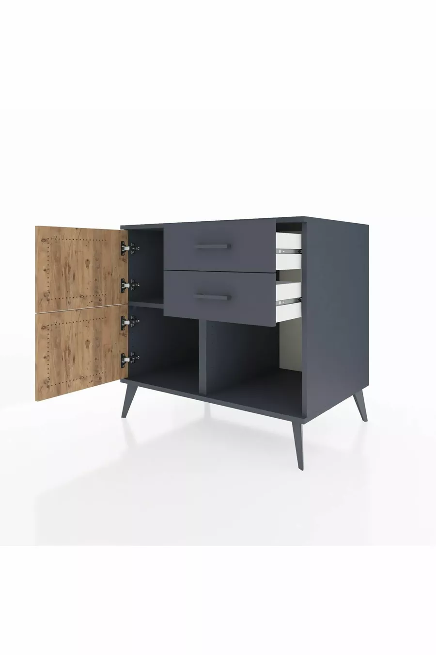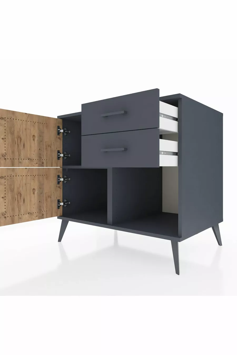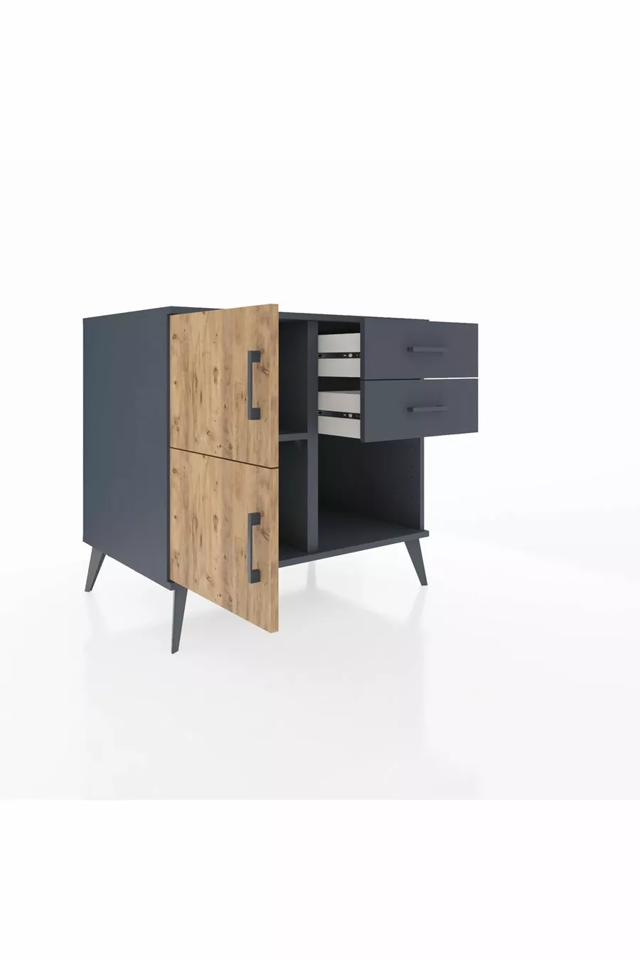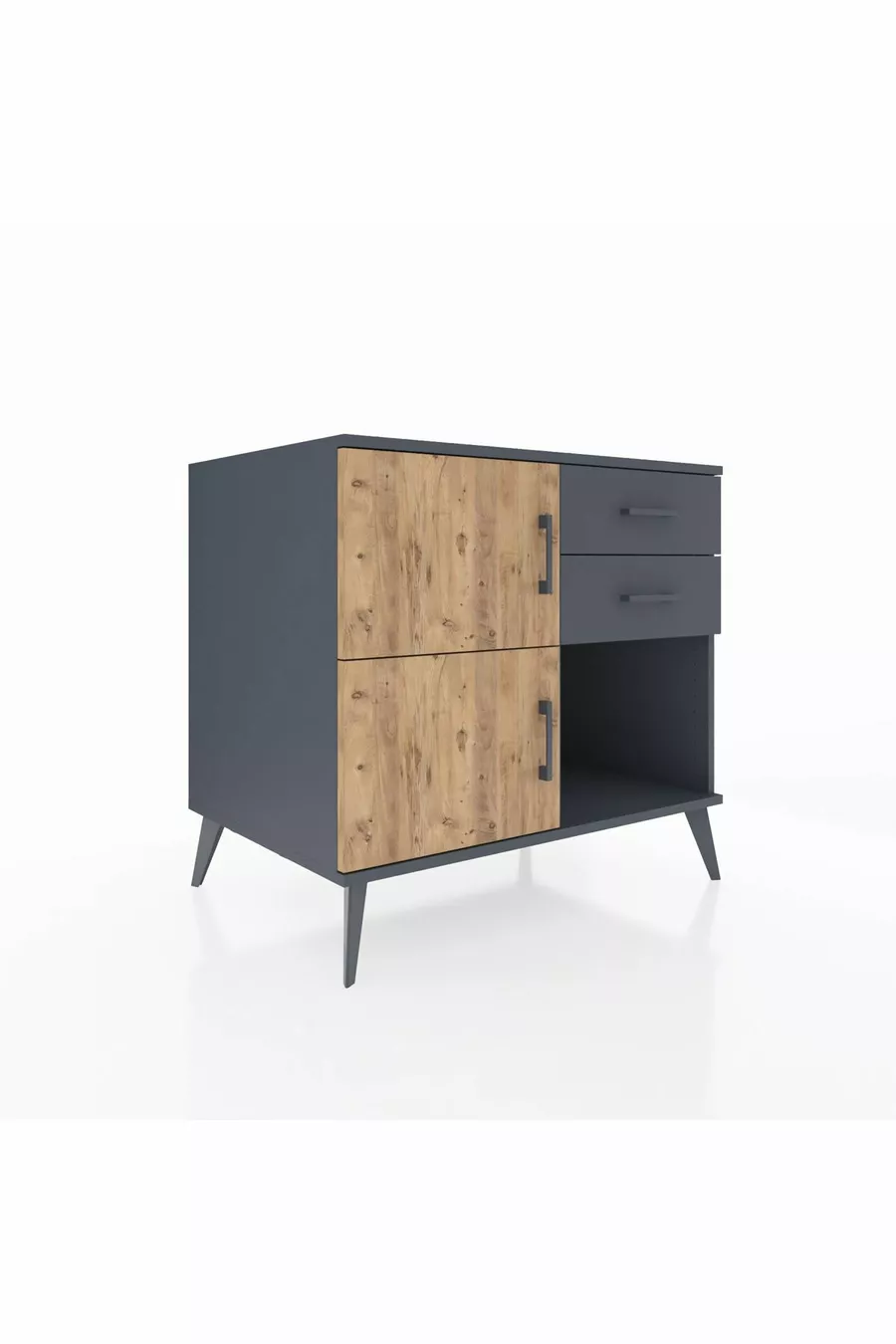 Kronos Kast Enkel Plank 2 Lade 2 Deuren Antraciet-dennen/Antraciet