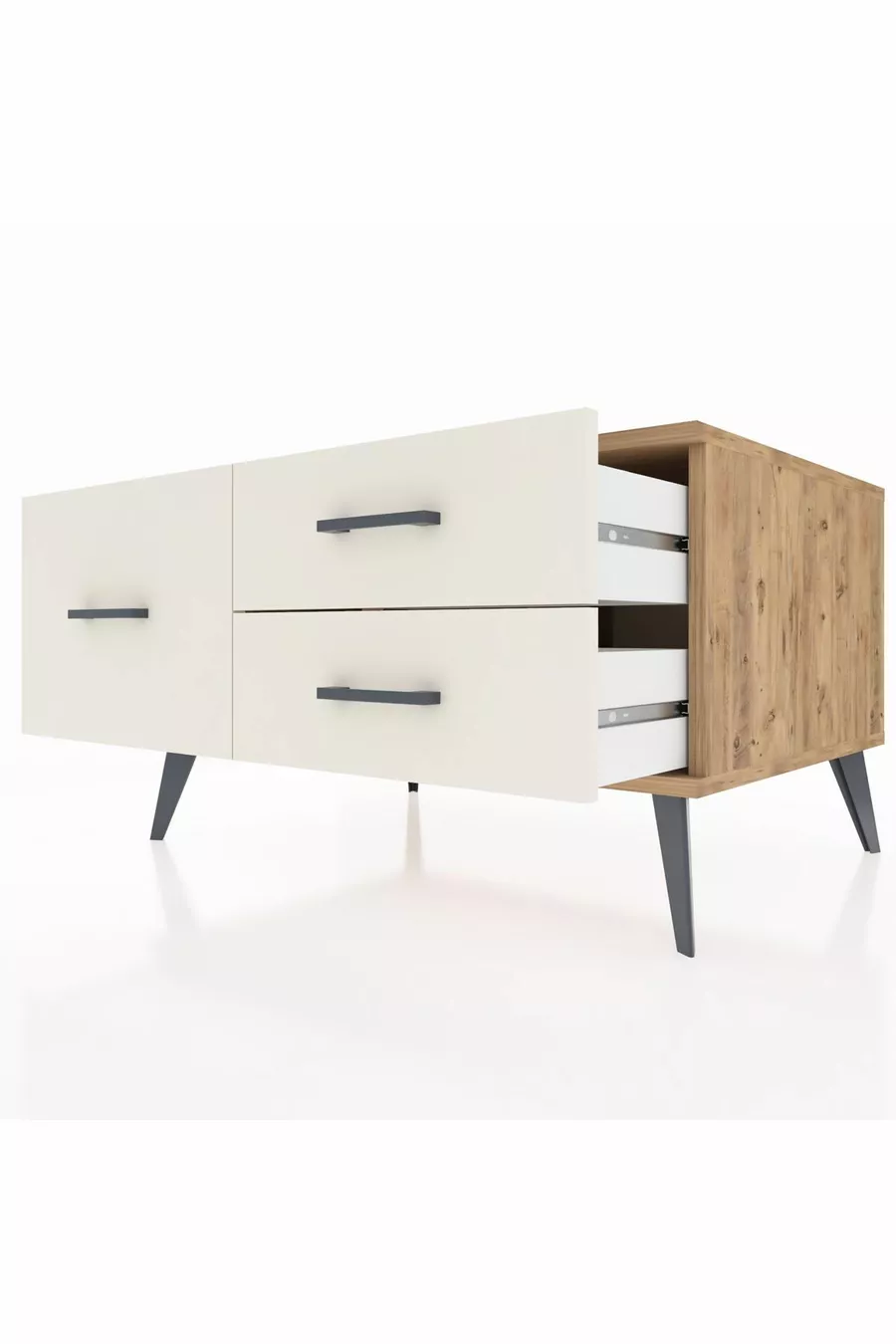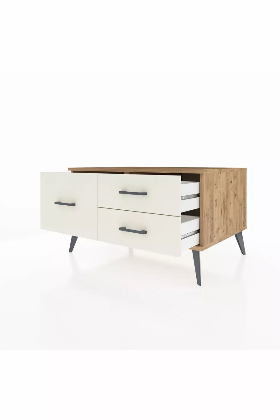 Kleur: Wit Materiaal: Suntalam Hoogte: 48 cm Breedte: 88 cm Diepte: 59 cm Aantal lades: 3 Productkenmerk: Met deksel Stijl: Modern Thema / Stijl: Modern Herkomst: TR