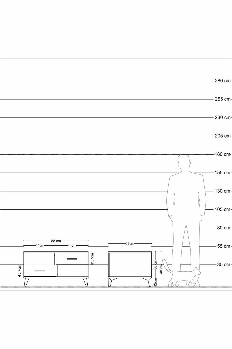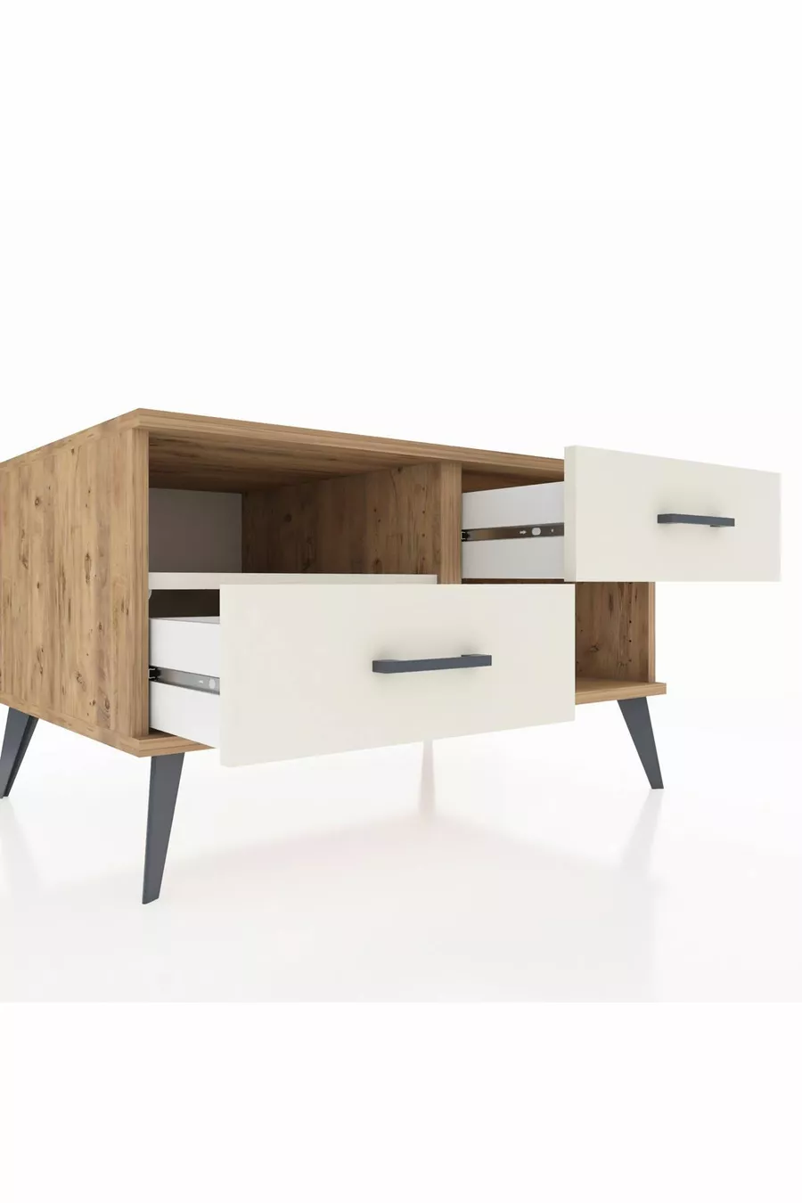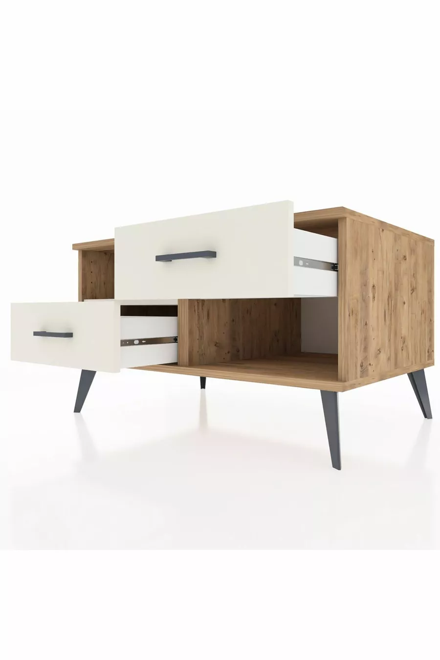 Kleur: Wit Materiaal: Spaanplaat Hoogte: 48 cm Breedte: 88 cm Diepte: 59 cm Aantal laden: 2 Productkenmerk: Met deksel Stijl: Modern Thema / Stijl: Modern Herkomst: TR