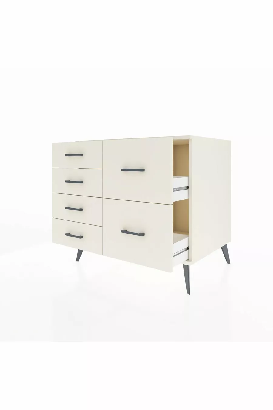 Kleur: Wit Materiaal: Suntalam Hoogte: 80 cm Breedte: 88 cm Diepte: 59 cm Aantal lades: 6 Productkenmerk: Met deksel Stijl: Modern Thema / Stijl: Modern Herkomst: TR