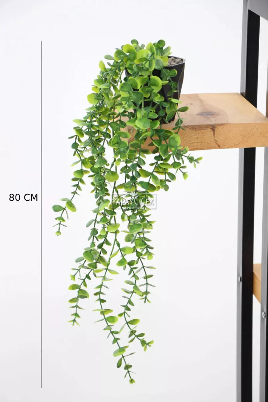 Kunstbloem met dichte bladeren, groen eucalyptus hangende klimop (met zwarte kunststof pot) cm