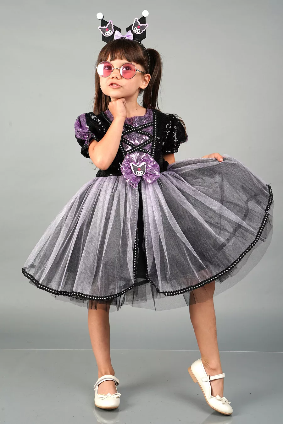 Kuromi Verjaardag Prinses Kostuum en Jurk met Strasskroon Accessoire