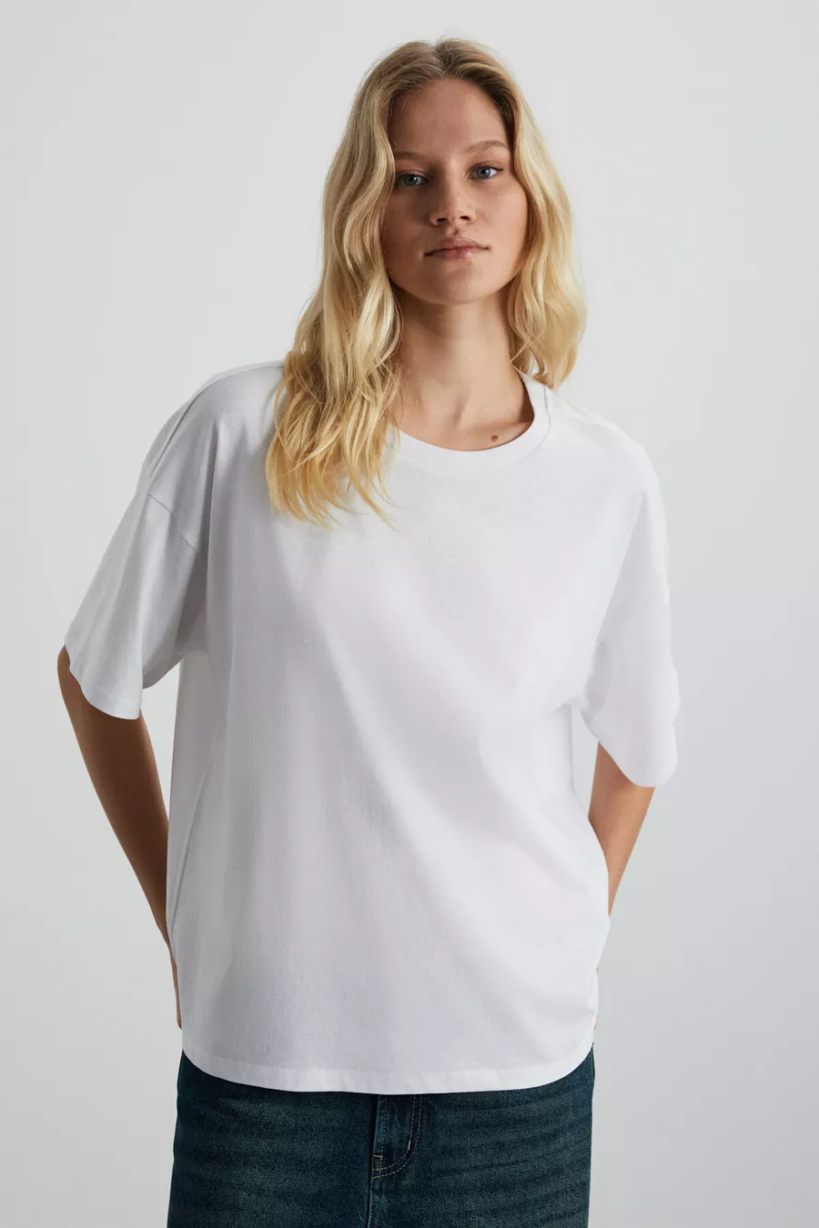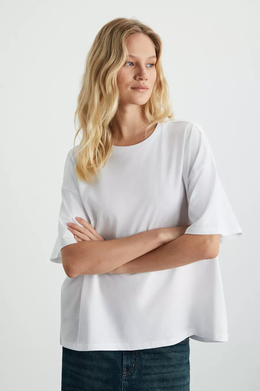 Lagertha Dames % Biologisch Katoen Dik Gestructureerd Oversized Fit Rondhals Wit T-shirt