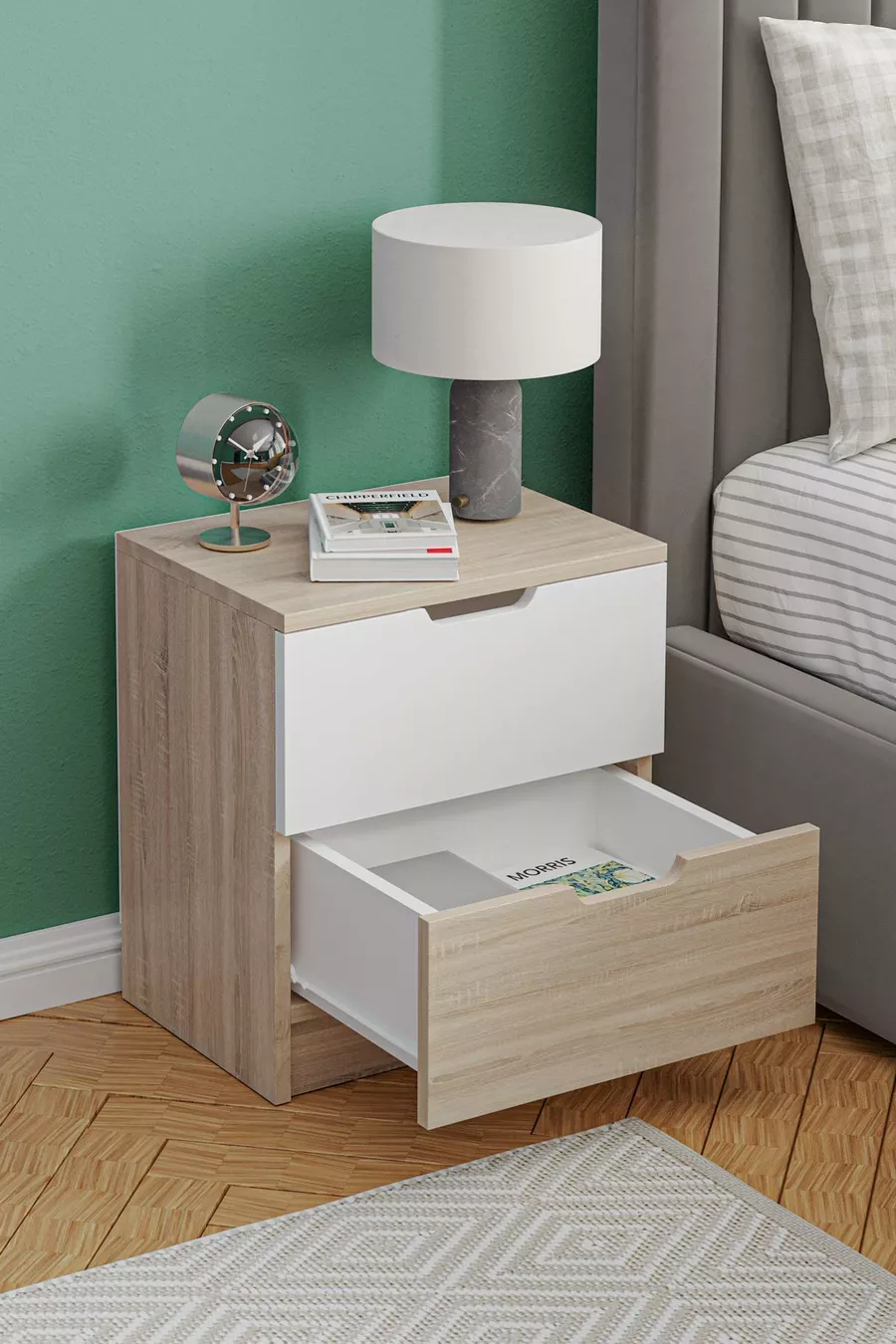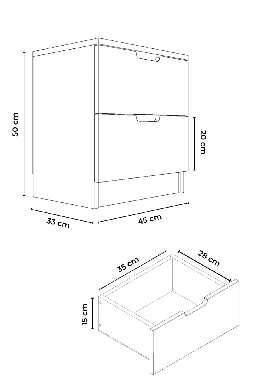 Materiaal: Suntalam Kleur: Veelkleurig Garantieperiode: 2 jaar Aantal laden: 2 Hoogte: 50 cm Breedte: 45 cm Diepte: 33 cm Stijl: Modern Thema / Stijl: Modern Land van herkomst: TR Kenmerk: Met lades